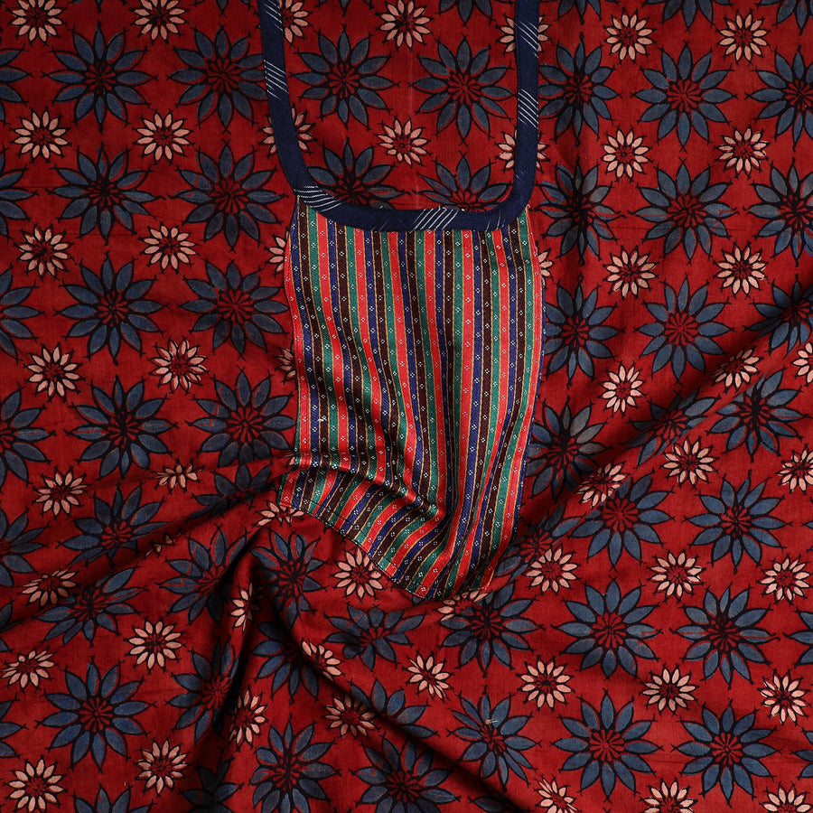 This cotton ajrakh kurta material is crafted by artisans from Kutch, Gujarat, using traditional block-printing techniques. Made with intricate patterns, it offers both elegance and comfort for any special occasion. The reflects the rich heritage of ajrakh block printing, making it an ideal choice for those who value both tradition and sustainability.