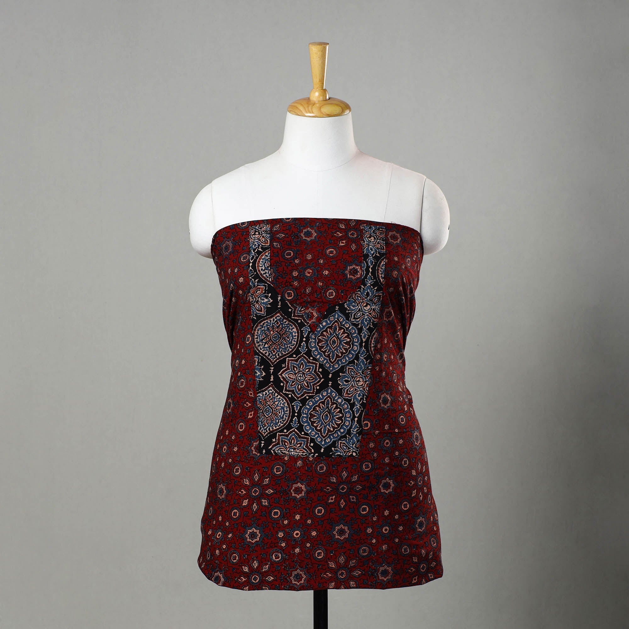 This cotton ajrakh kurta material is crafted by artisans from Kutch, Gujarat, using traditional block-printing techniques. Made with intricate patterns, it offers both elegance and comfort for any special occasion. The reflects the rich heritage of ajrakh block printing, making it an ideal choice for those who value both tradition and sustainability.