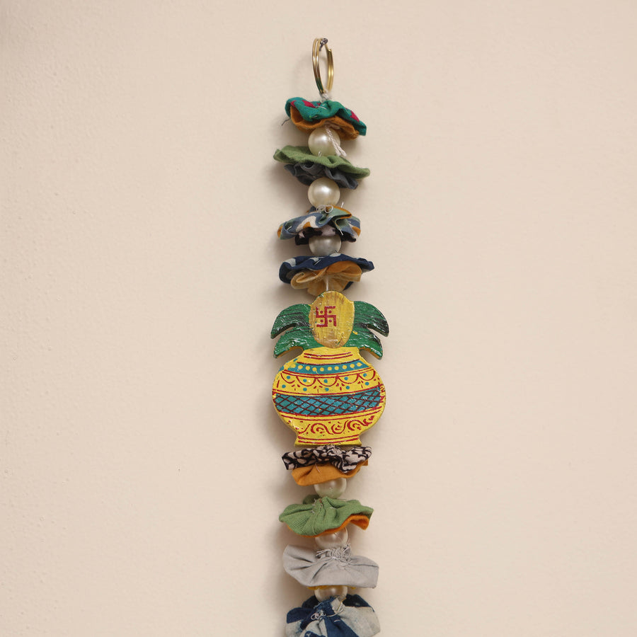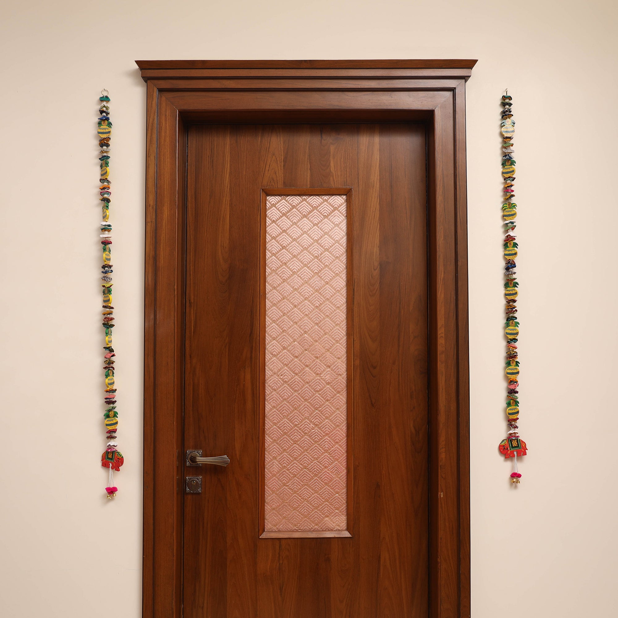 | Material | This handmade beadwork wall hanging (set of 2) is the perfect addition to your diwali or festive decor. Crafted by skilled artisans, the design features traditional threadwork, gota, beads, and pompoms, making it a charming addition to diwali or any festive occasion. Its elegant, handmade design brings cultural richness and blessings to your space. |