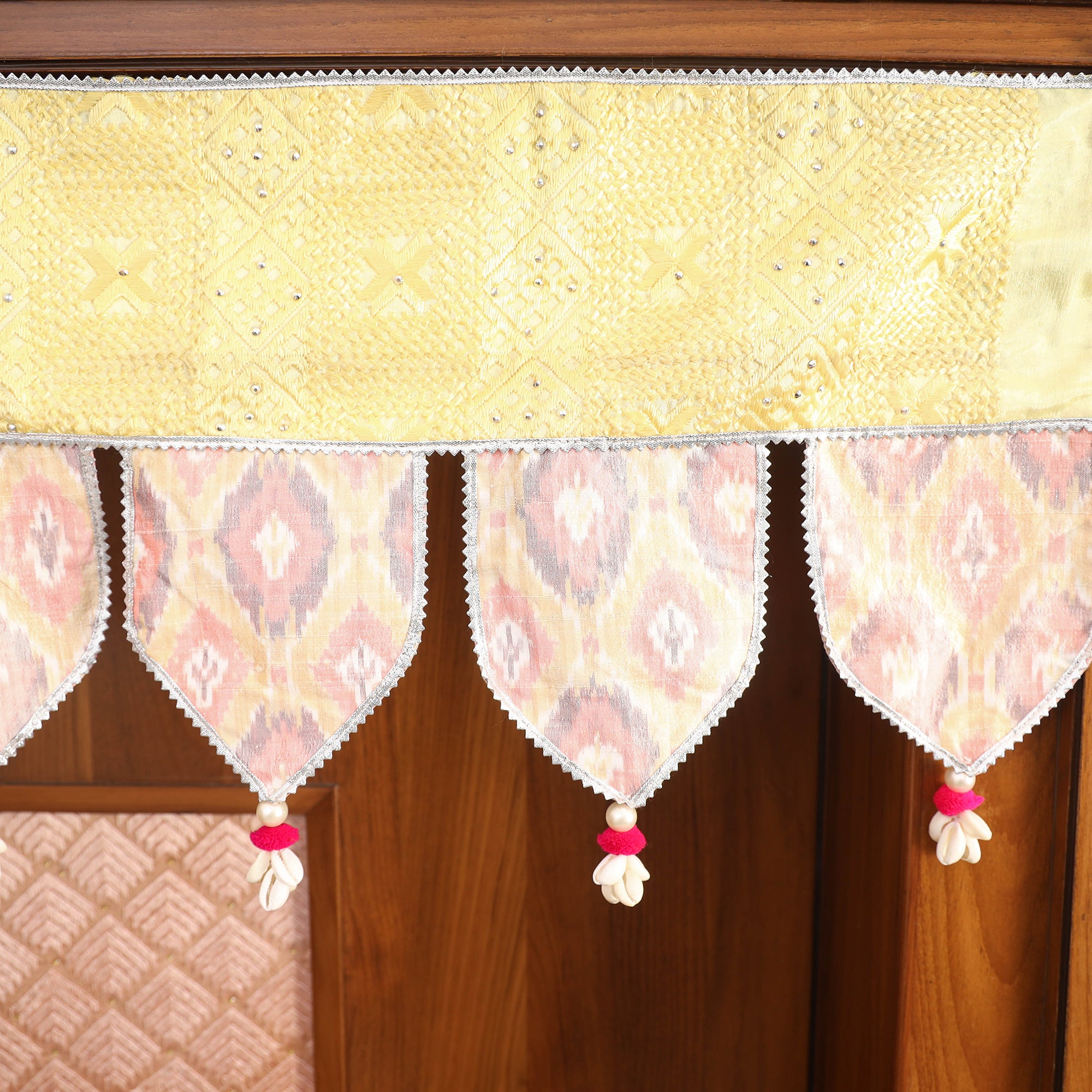 This handmade toran is the perfect accessory for your home’s entrance, blending vibrant fabric and & gota patti work. Torans have been used in Indian decor for centuries, symbolizing auspiciousness. Ideal for festivals like diwali and durga pooja, this toran is crafted with care, adding charm and elegance to any space.