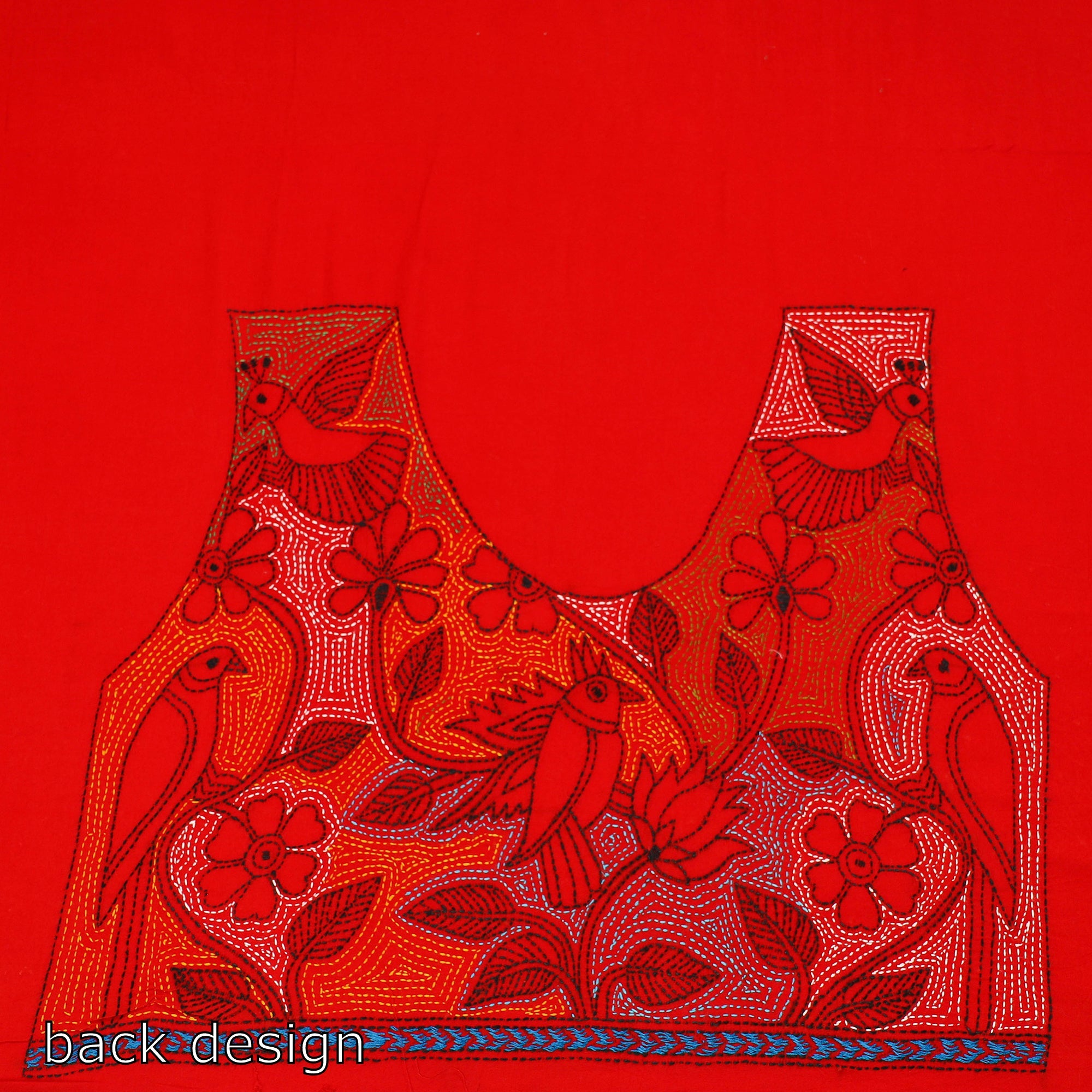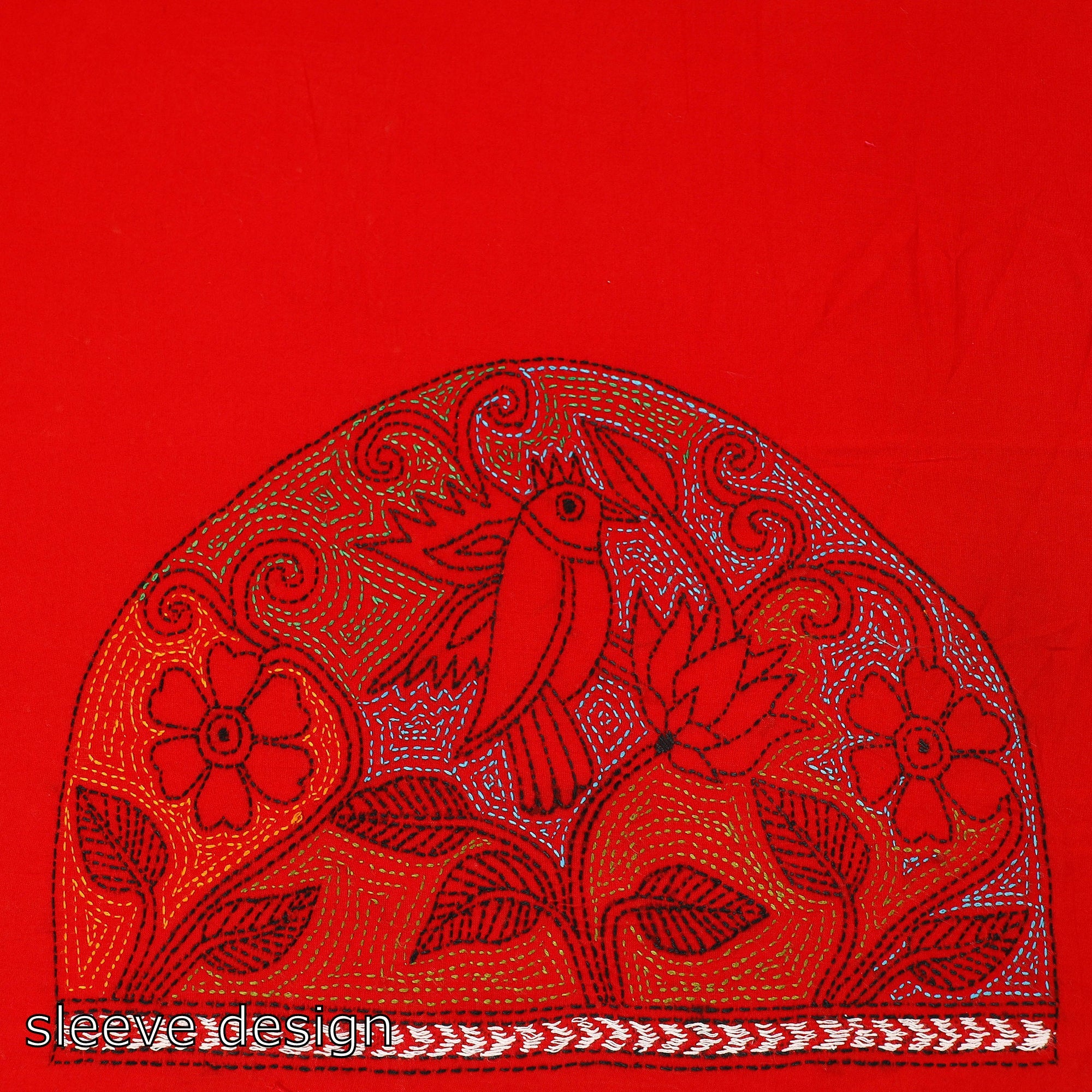 This stunning red bengal kantha hand embroidery cotton blouse piece showcases the artistry of West Bengal’s Kantha work. Customize it to your preferred style and pair it with your cherished sarees for a chic and culturally-inspired look. Perfect for special occasions and celebrations.