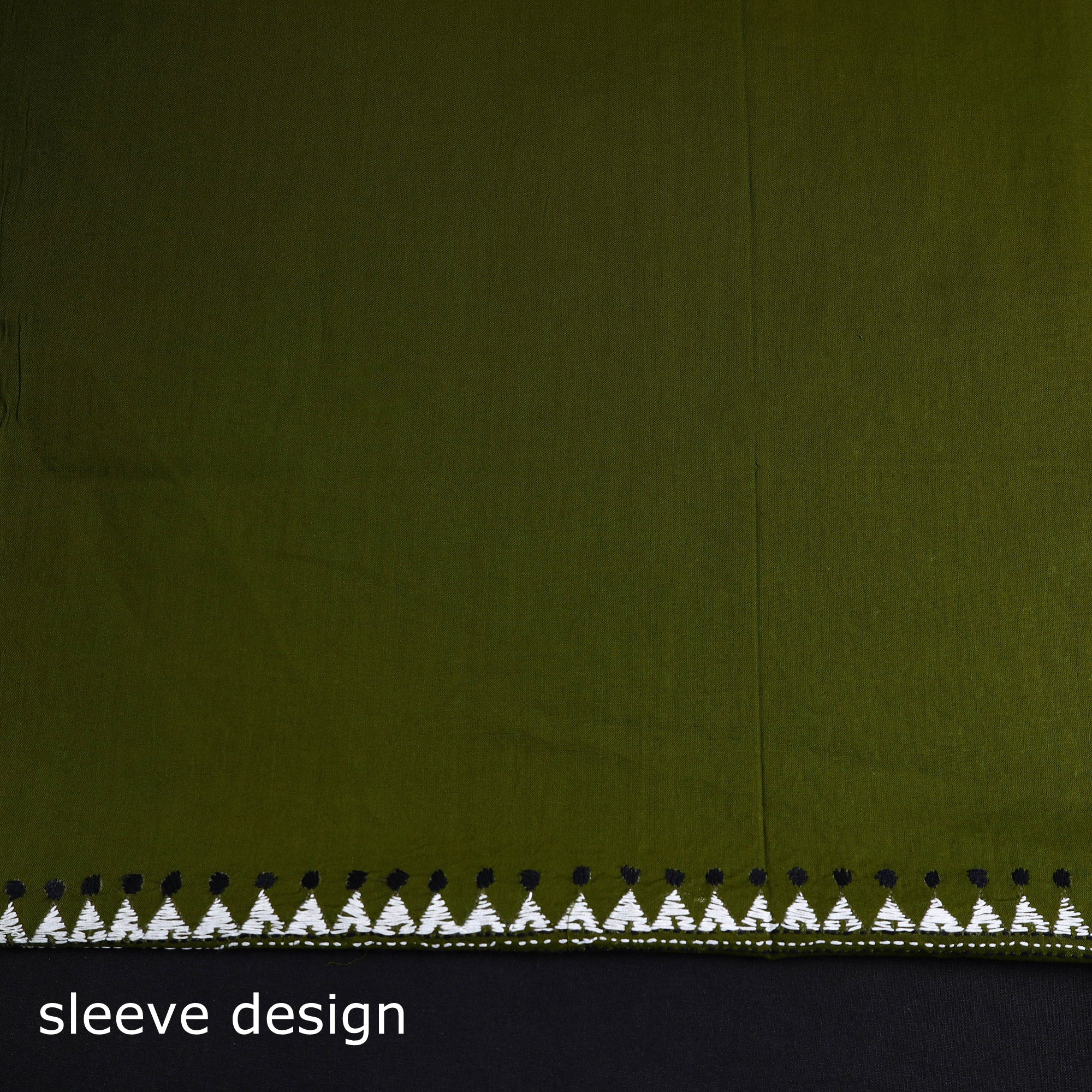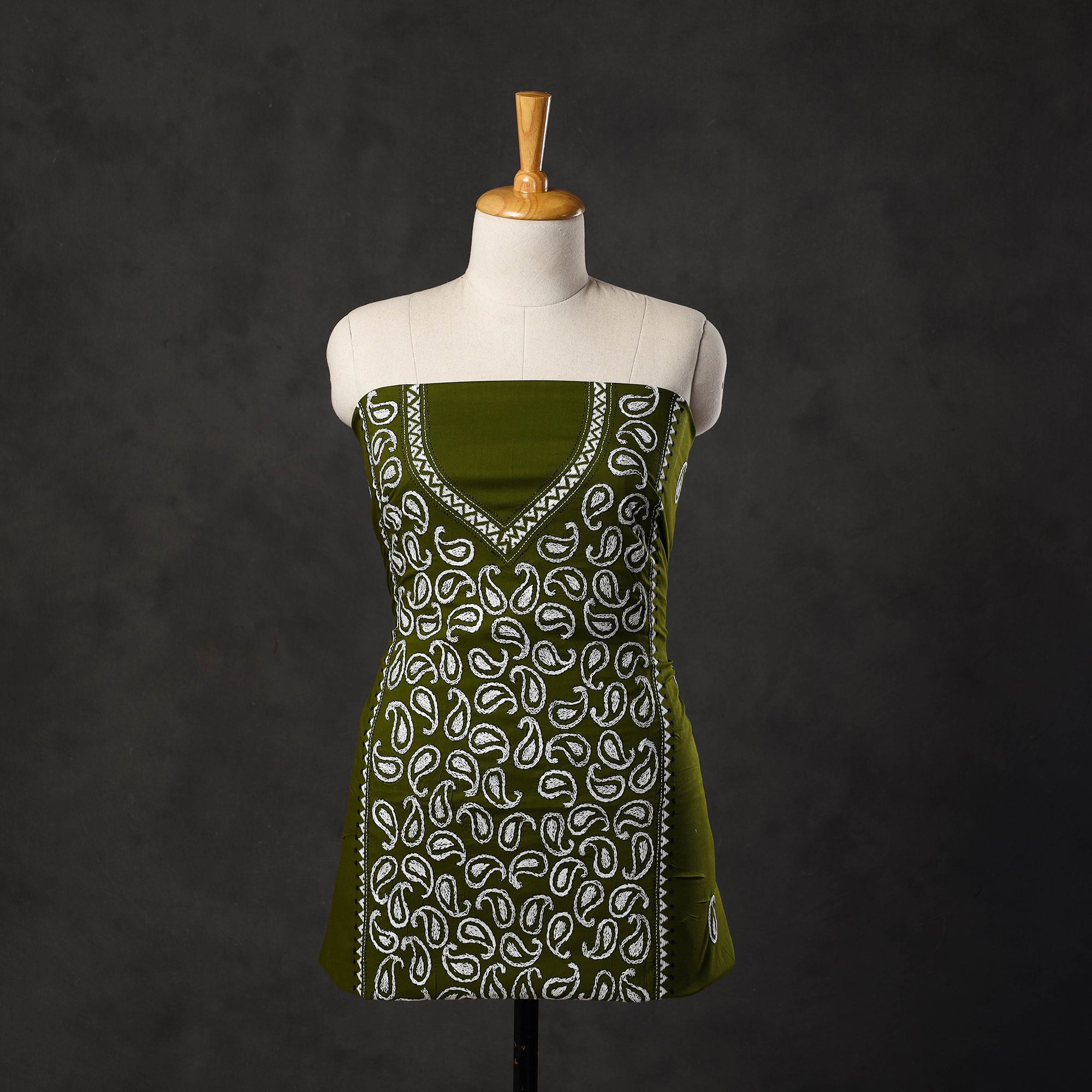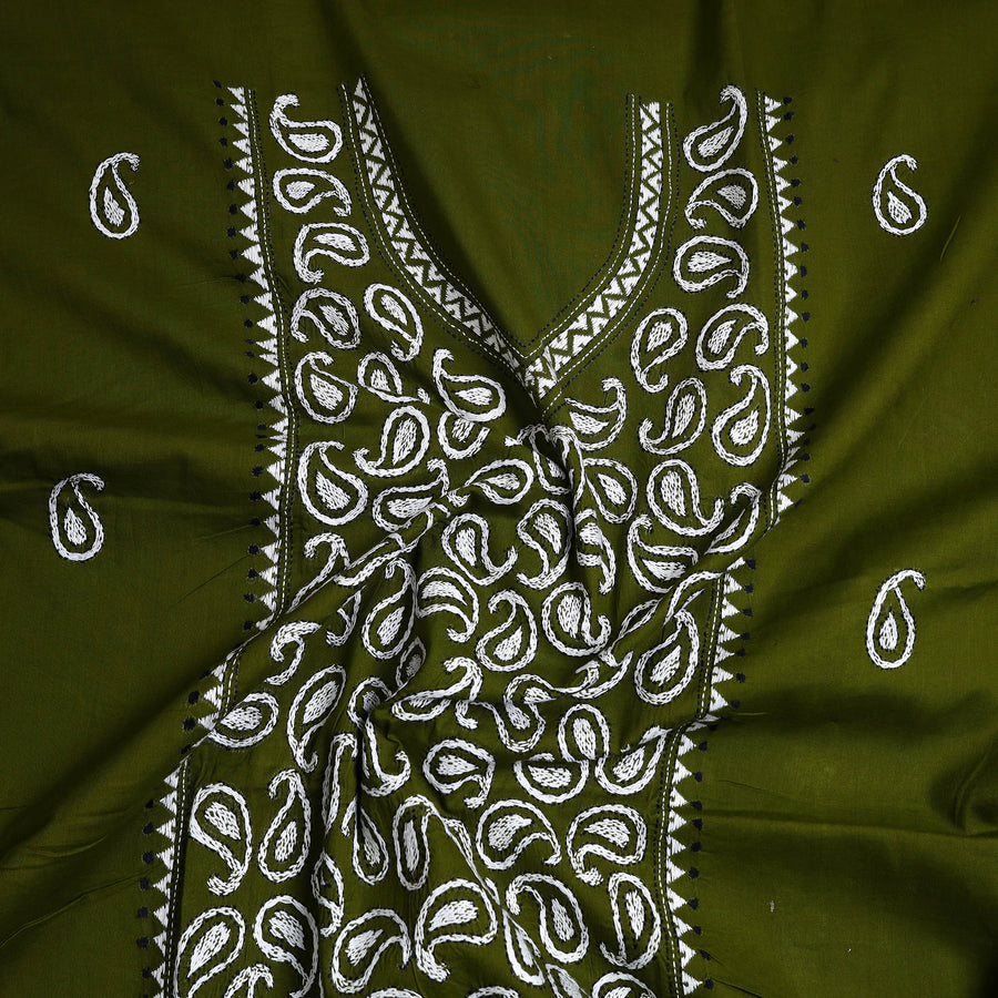 This green bengal kantha embroidered cotton kurta material, designed with contemporary patterns & has been embroidered using West Bengal's traditional craft technique of Kantha.