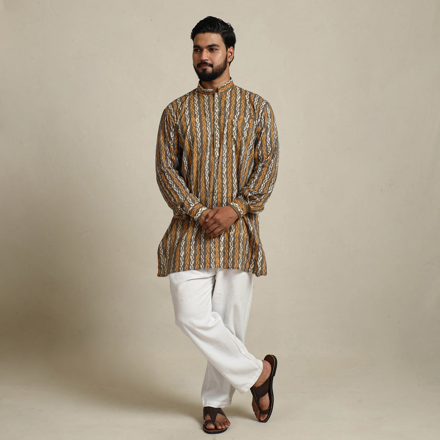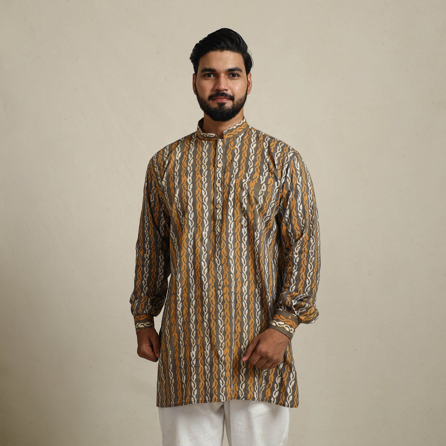 This exquisite men short hand batik print kurta blends traditional craftsmanship with modern comfort. Made from cotton, it features full sleeves, a chinese collar, and patch pocket on the front. Ideal for festive occasions or casual outings, this kurta brings style and heritage together.