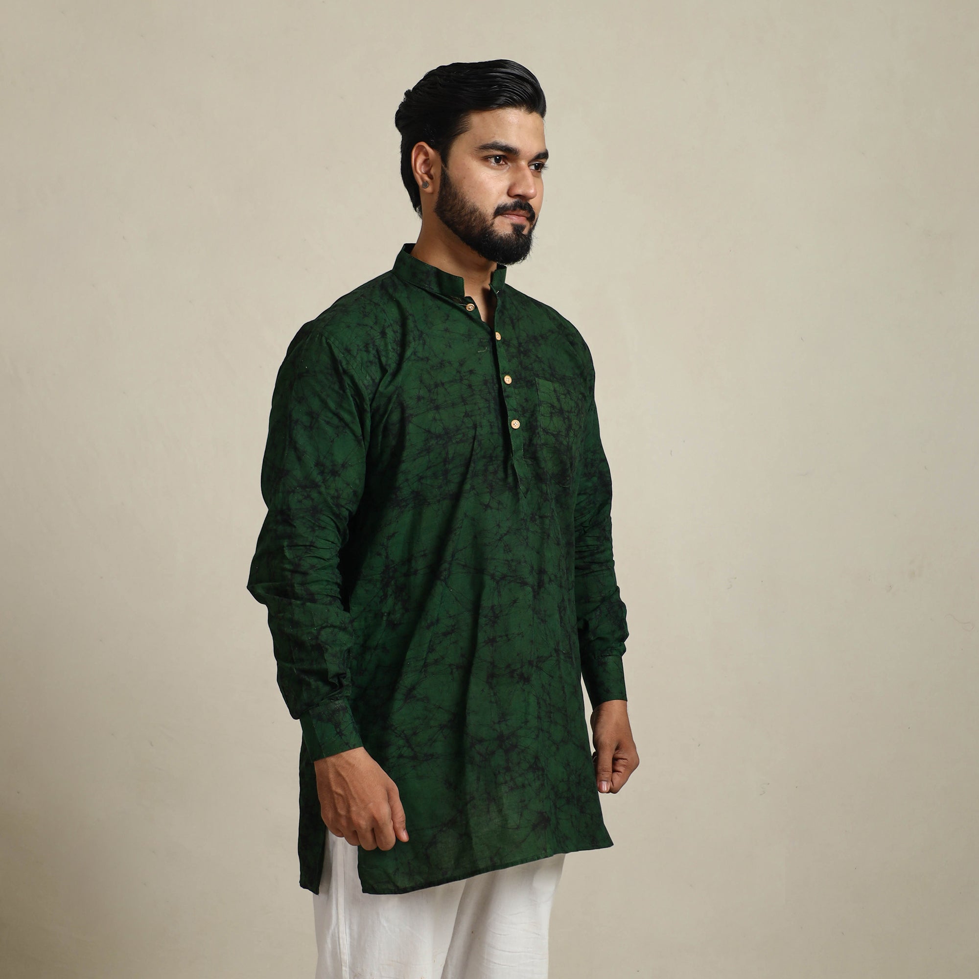 This exquisite men short hand batik print kurta blends traditional craftsmanship with modern comfort. Made from cotton, it features full sleeves, a chinese collar, and patch pocket on the front. Ideal for festive occasions or casual outings, this kurta brings style and heritage together.