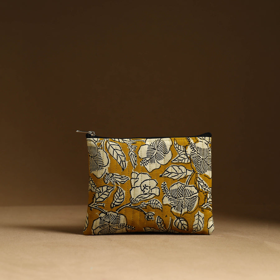 Keep your essentials organized with our yellow handmade cotton utility pouch set. The handcrafted bag set serves as a multipurpose solution for storing makeup, jewelry, medicines, stationery, and more. The foam layer lining ensures durability and protection. These eco-friendly pouches are both stylish and functional. These pouches are having a smooth zipper closure.