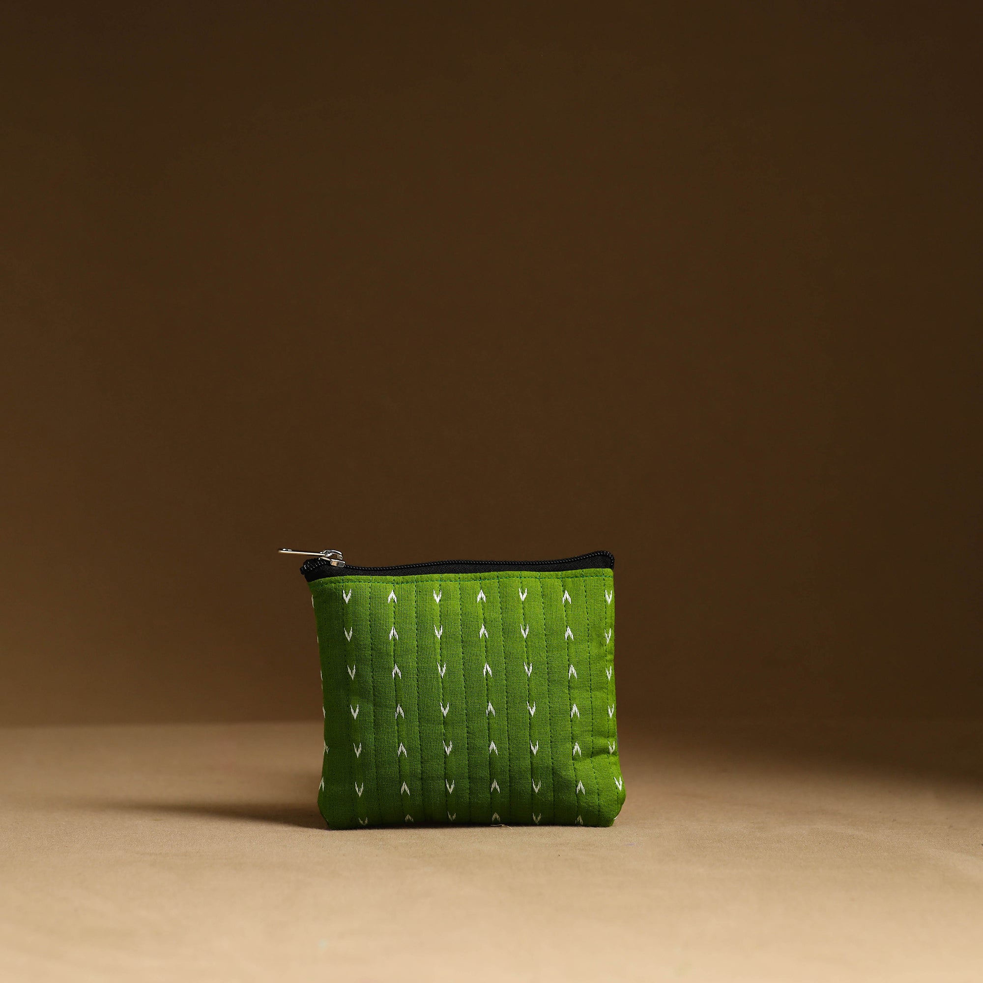 Keep your essentials organized with our green handmade cotton utility pouch set. The handcrafted bag set serves as a multipurpose solution for storing makeup, jewelry, medicines, stationery, and more. The foam layer lining ensures durability and protection. These eco-friendly pouches are both stylish and functional. These pouches are having a smooth zipper closure.