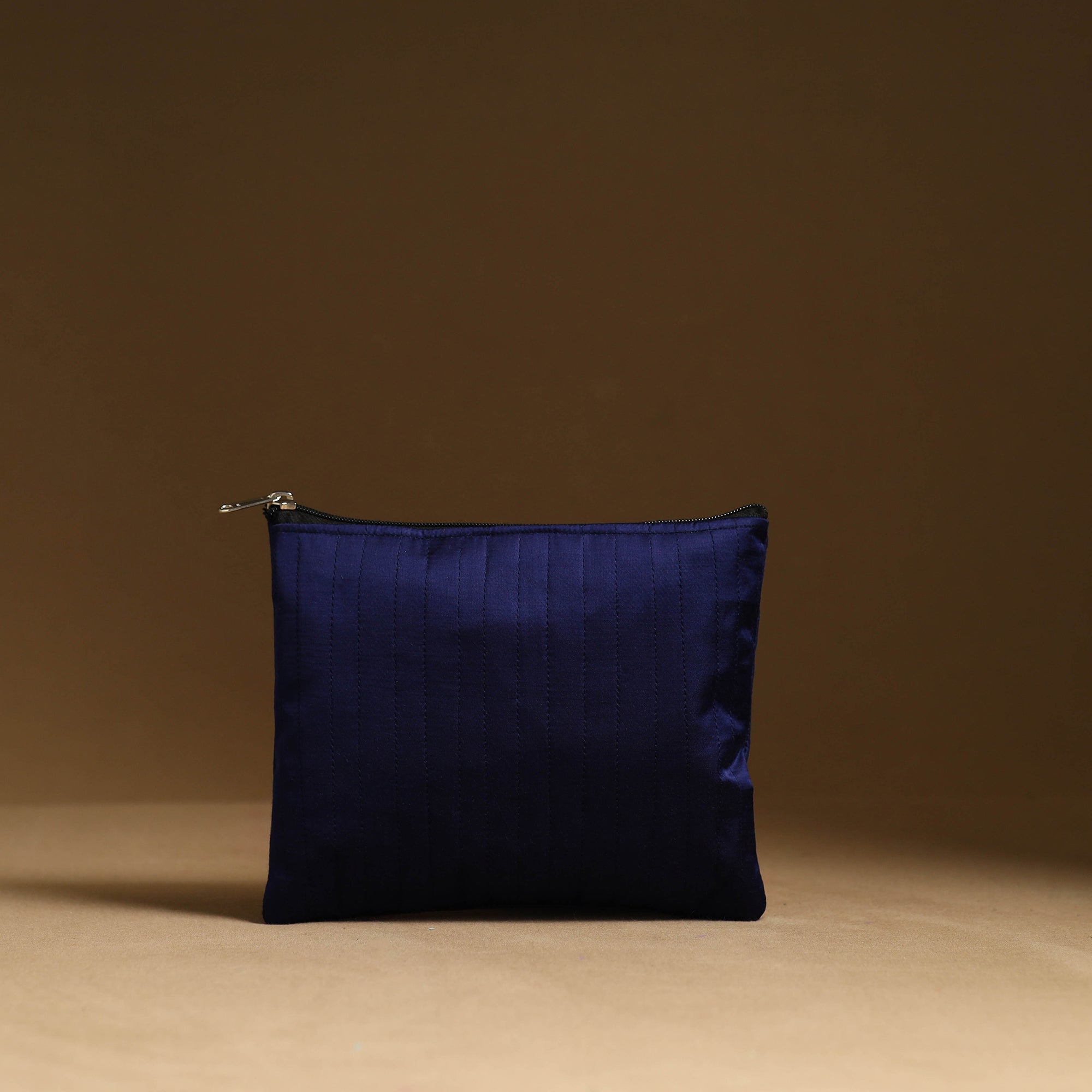 Keep your essentials organized with our blue handmade cotton utility pouch set. The handcrafted bag set serves as a multipurpose solution for storing makeup, jewelry, medicines, stationery, and more. The foam layer lining ensures durability and protection. These eco-friendly pouches are both stylish and functional. These pouches are having a smooth zipper closure.
