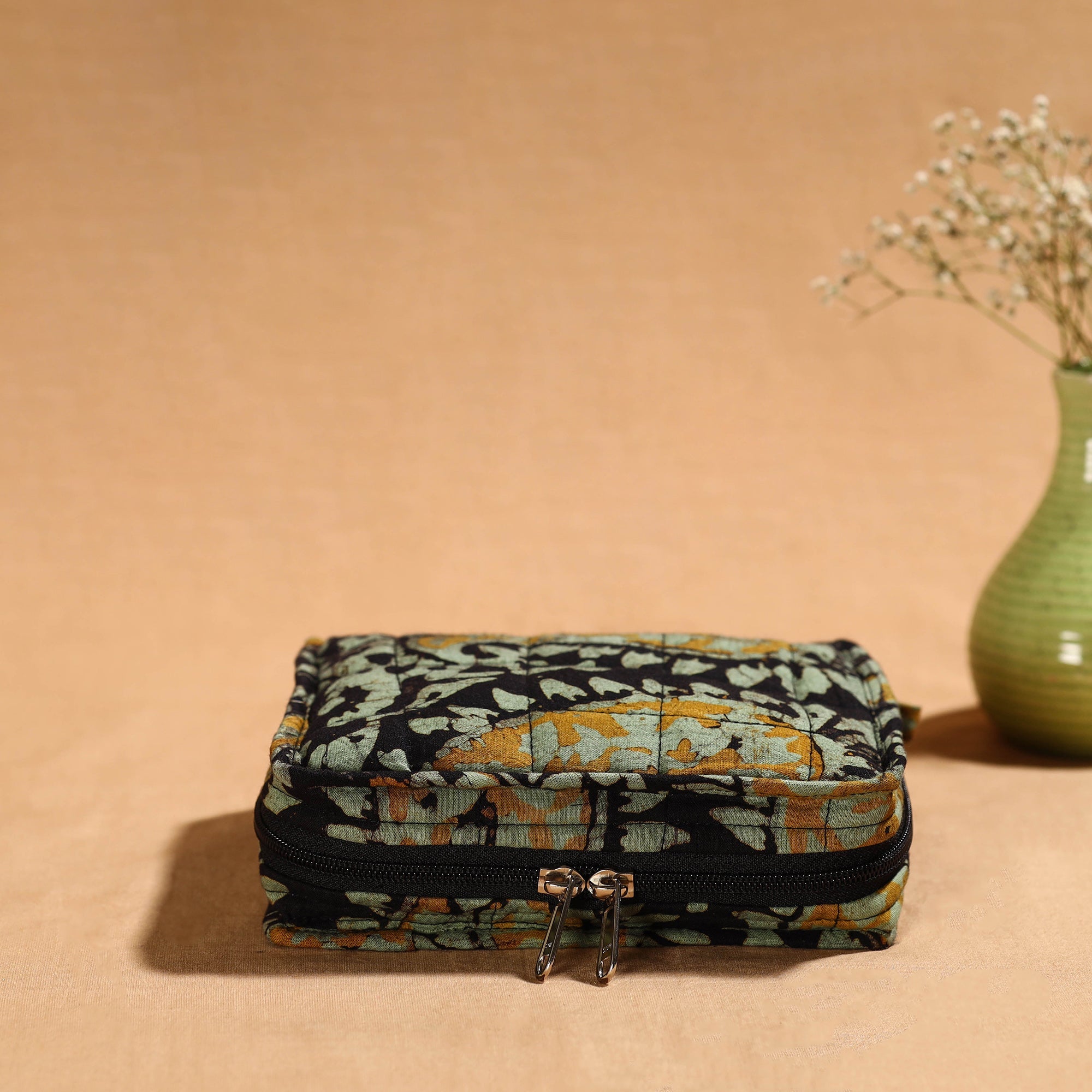This green handmade 4-pockets cotton jewellery bag can be used for store jewellery, makeup items, cosmetic and other small stuffs. This is compact enough to fit in your luggage wherever you travel while keeping your jewellery well organized.
