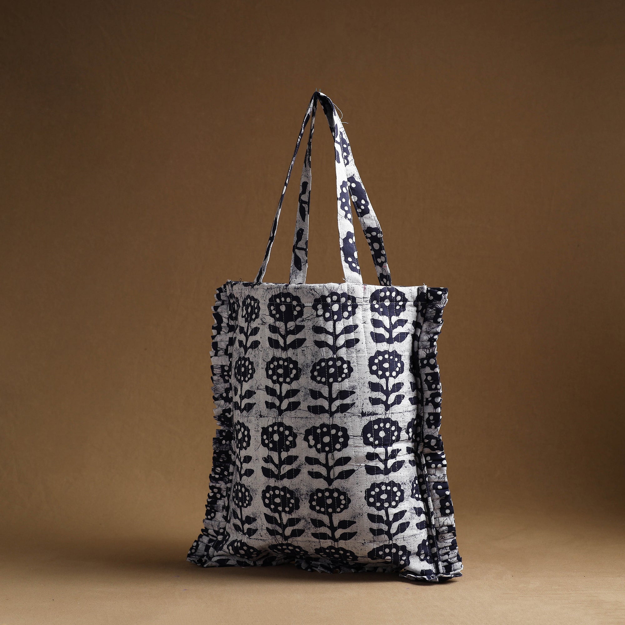 This blue handcrafted cotton frill jhola bag seamlessly blends tradition with modern style. Made from eco-friendly materials, it’s spacious enough to carry your daily essentials while adding a touch of artisanal charm to your outfit.