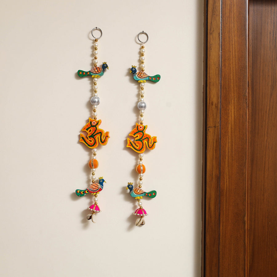 | Material | This handmade beadwork wall hanging is the perfect addition to your diwali or festive decor. Crafted by skilled artisans, the design features traditional threadwork, gota, beads, and handpainted wooden, making it a charming addition to diwali or any festive occasion. Its elegant, handmade design brings cultural richness and blessings to your space. |