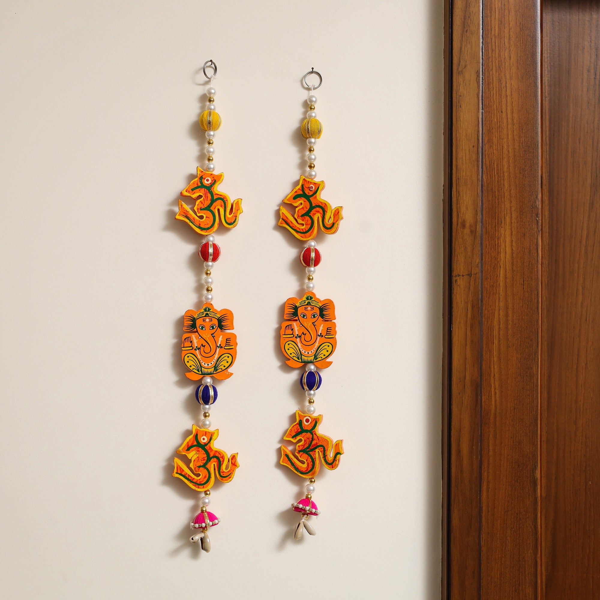 | Material | This handmade beadwork wall hanging is the perfect addition to your diwali or festive decor. Crafted by skilled artisans, the design features traditional threadwork, gota, beads, and handpainted wooden, making it a charming addition to diwali or any festive occasion. Its elegant, handmade design brings cultural richness and blessings to your space. |