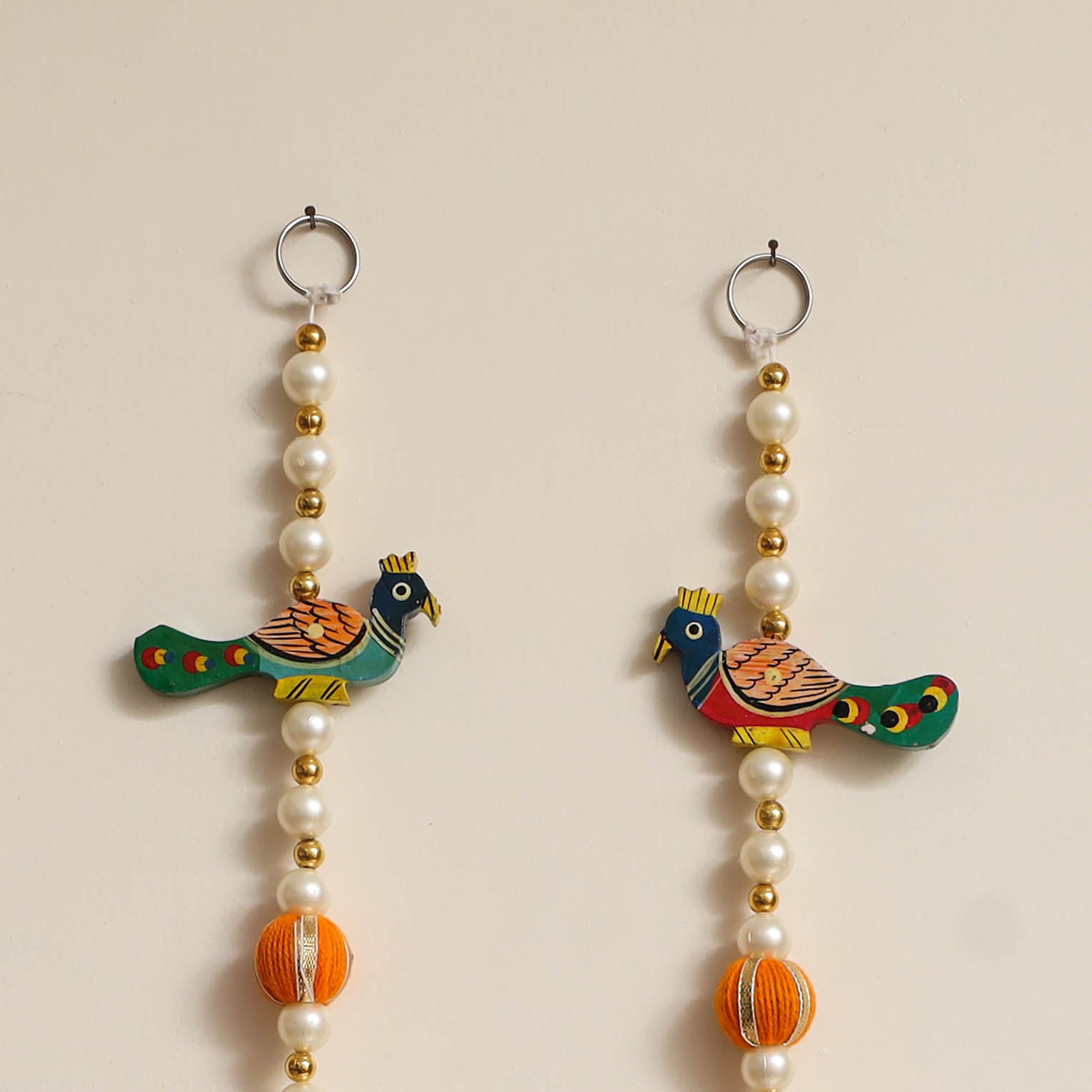 | Material | This handmade beadwork wall hanging is the perfect addition to your diwali or festive decor. Crafted by skilled artisans, the design features traditional threadwork, gota, beads, and handpainted wooden, making it a charming addition to diwali or any festive occasion. Its elegant, handmade design brings cultural richness and blessings to your space. |