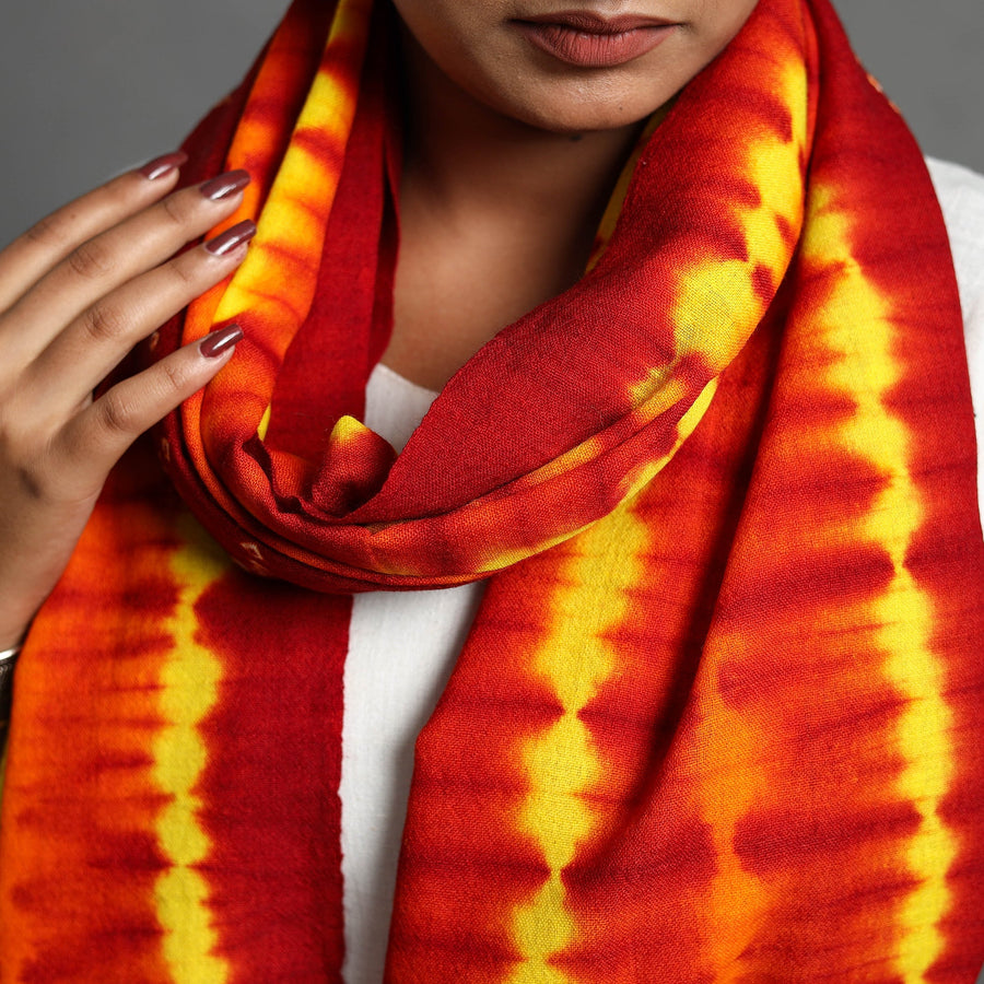 This red handwoven bandhani & shibori woolen stole from Kutch. Featuring the intricate Bandhani and Shibori tie-dye patterns, this stole reflects the rich cultural heritage of Gujarat. The soft wool provides unmatched comfort, making it perfect for winter days. This stole adds a touch of elegance to any outfit.