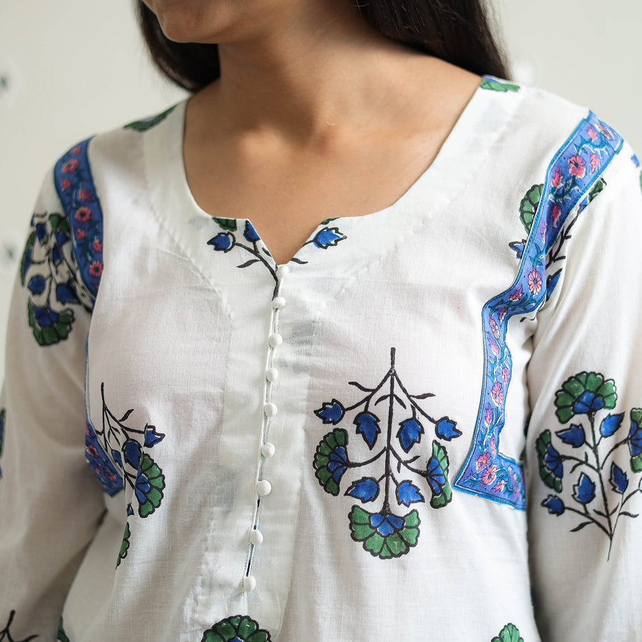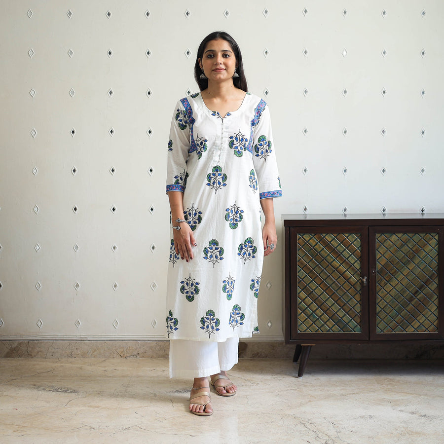 Embrace the timeless beauty of this white block printed cotton straight sanganeri kurta, crafted by skilled artisans. made from cotton ensures comfort throughout the day, while the elegant Sanganeri print adds a touch of traditional artistry. With a convenient side pocket and a relaxed fit, this kurta is perfect for both casual outings and special occasions.