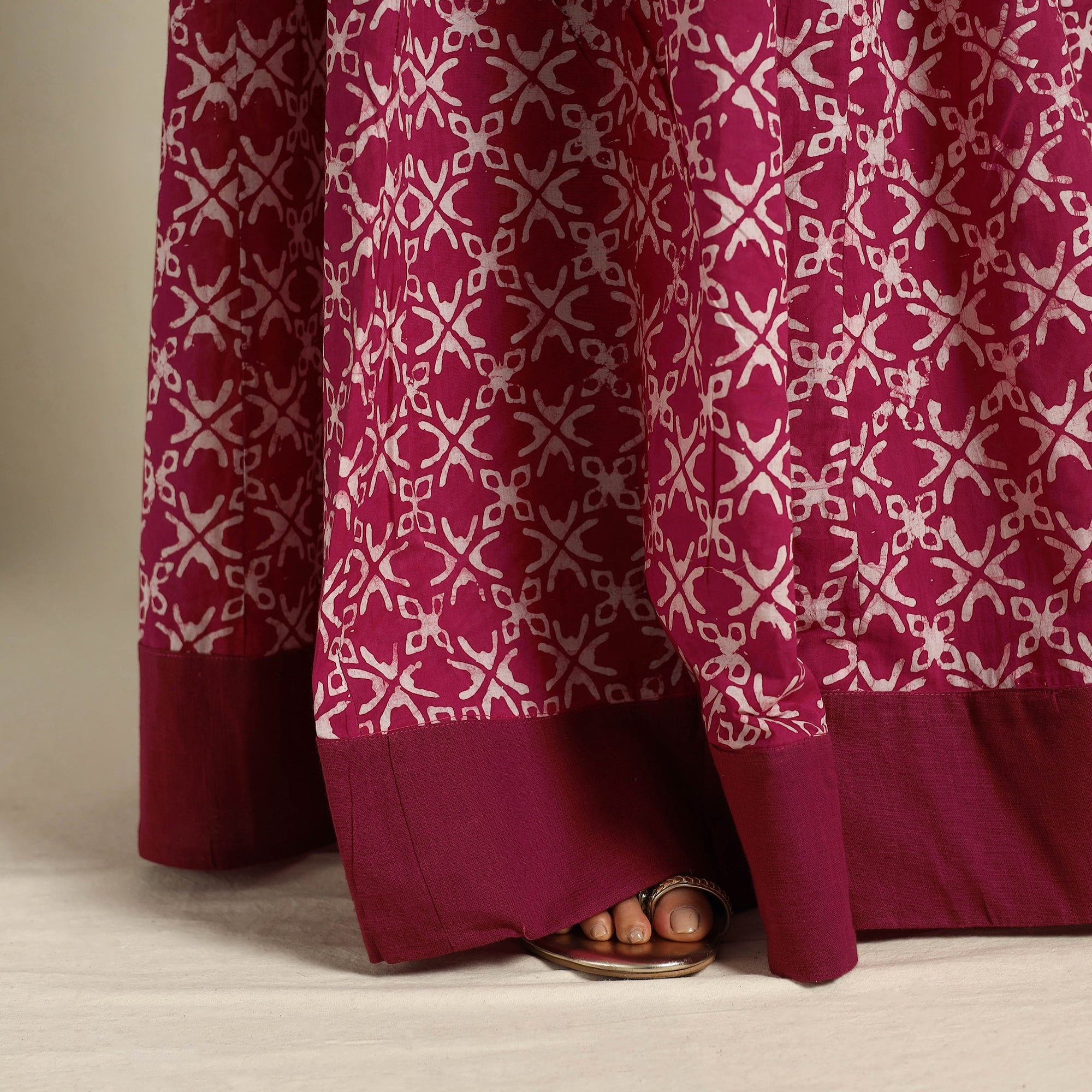 Add a touch of Indian tradition to your wardrobe with our 24 kali pInk patchwork batik print cotton long skirt. Crafted using the intricate Batik dyeing technique, this 24 Kali patchwork design blends culture and style beautifully. The skirt features a waist tie-up closure for a customizable fit and comes with a plain border, adding a simple yet elegant touch. Perfect for festive celebrations or casual outings.