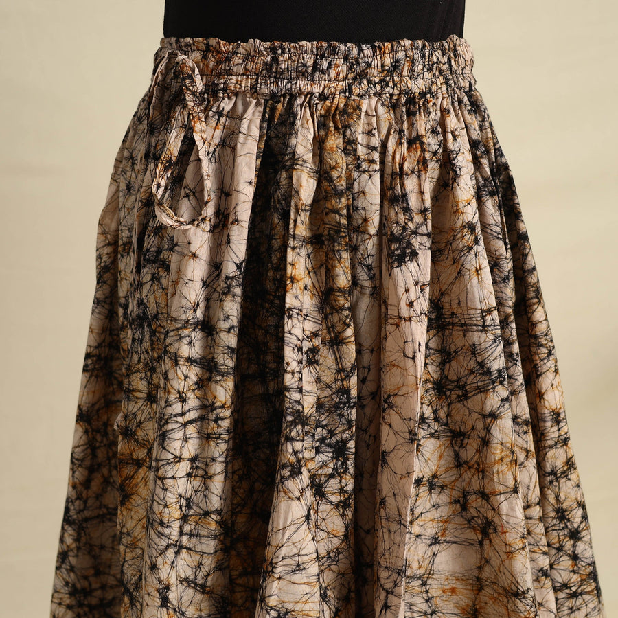 Add a touch of elegance to your wardrobe with this 24 kali beige patchwork batik block print cotton long skirt. Crafted from soft breathable cotton it features intricate batik prints and a flowy Kali design for a graceful silhouette. The adjustable waist tie up closure ensures a perfect fit making it ideal for festivals casual outings, or everyday comfort.