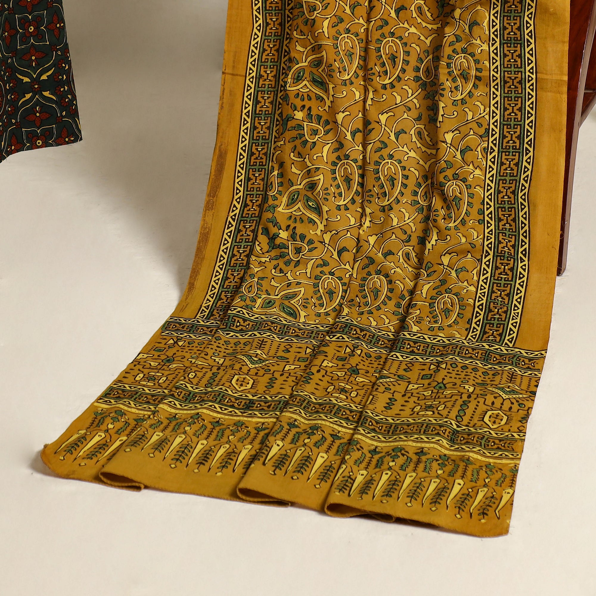 Ajrakh is a well-known traditional vegetable dyeing that resists block-printing techniques on cloth. Originated in Kutch, It is nearly around 4,500 years old practised by Khatri community of Kutch and Sikh.