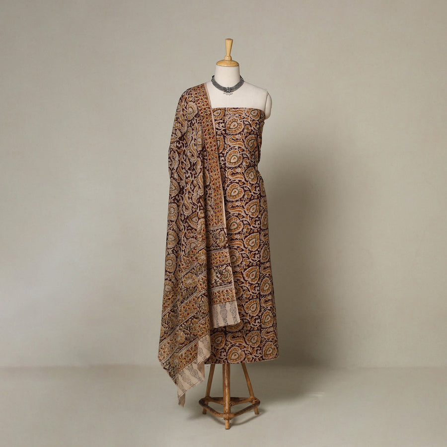Experience the artistry of brown pedana kalamkari block printing with this 2pc block print cotton pedana kalamkari dress material. Made using natural dyes and intricate patterns, it showcases the elegance of one of India’s oldest textile crafts. This set includes a beautifully printed kurta fabric and a matching dupatta, offering breathable comfort and traditional charm. Perfect for festive occasions, office wear, or casual outings.
