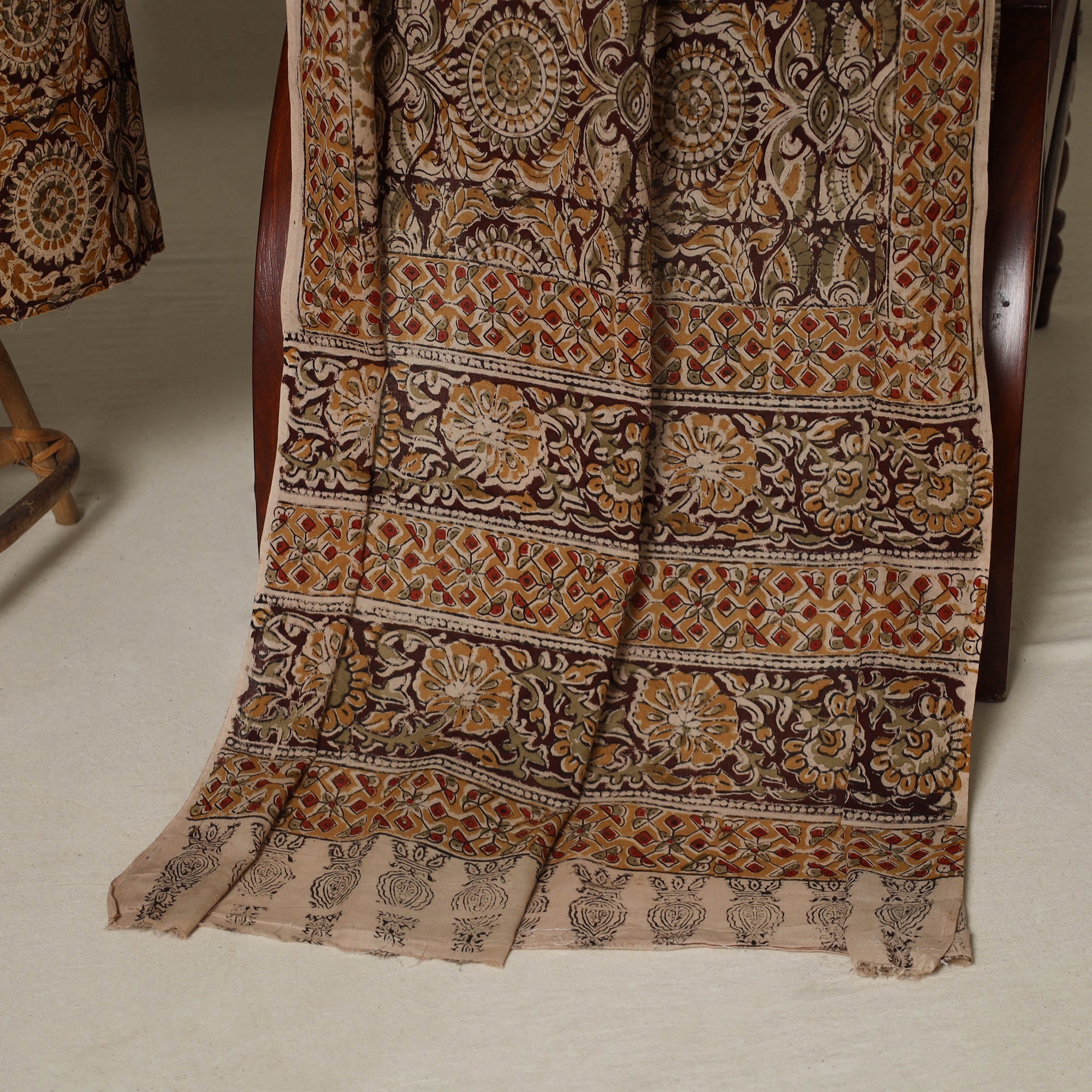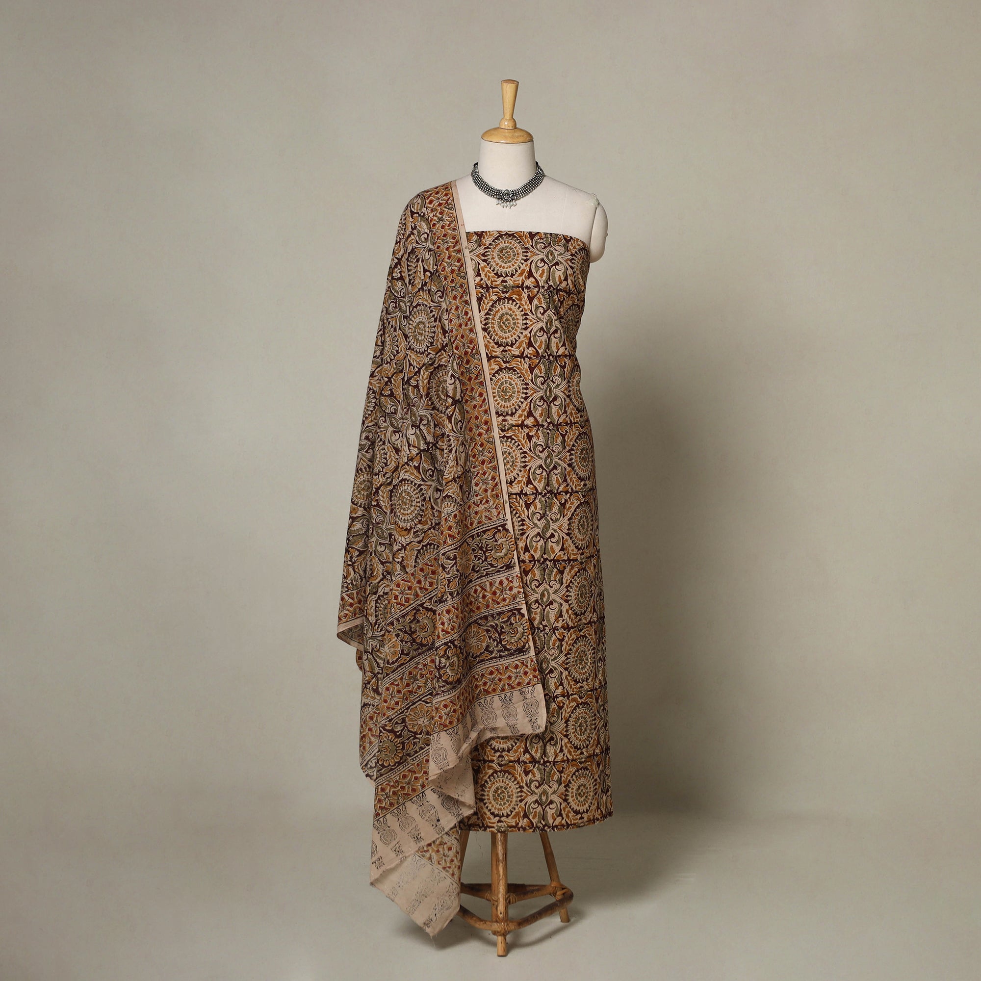 Experience the artistry of brown pedana kalamkari block printing with this 2pc block print cotton pedana kalamkari dress material. Made using natural dyes and intricate patterns, it showcases the elegance of one of India’s oldest textile crafts. This set includes a beautifully printed kurta fabric and a matching dupatta, offering breathable comfort and traditional charm. Perfect for festive occasions, office wear, or casual outings.