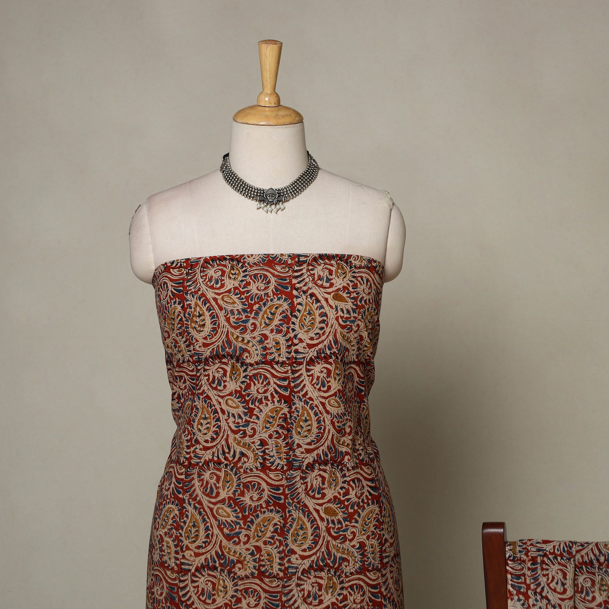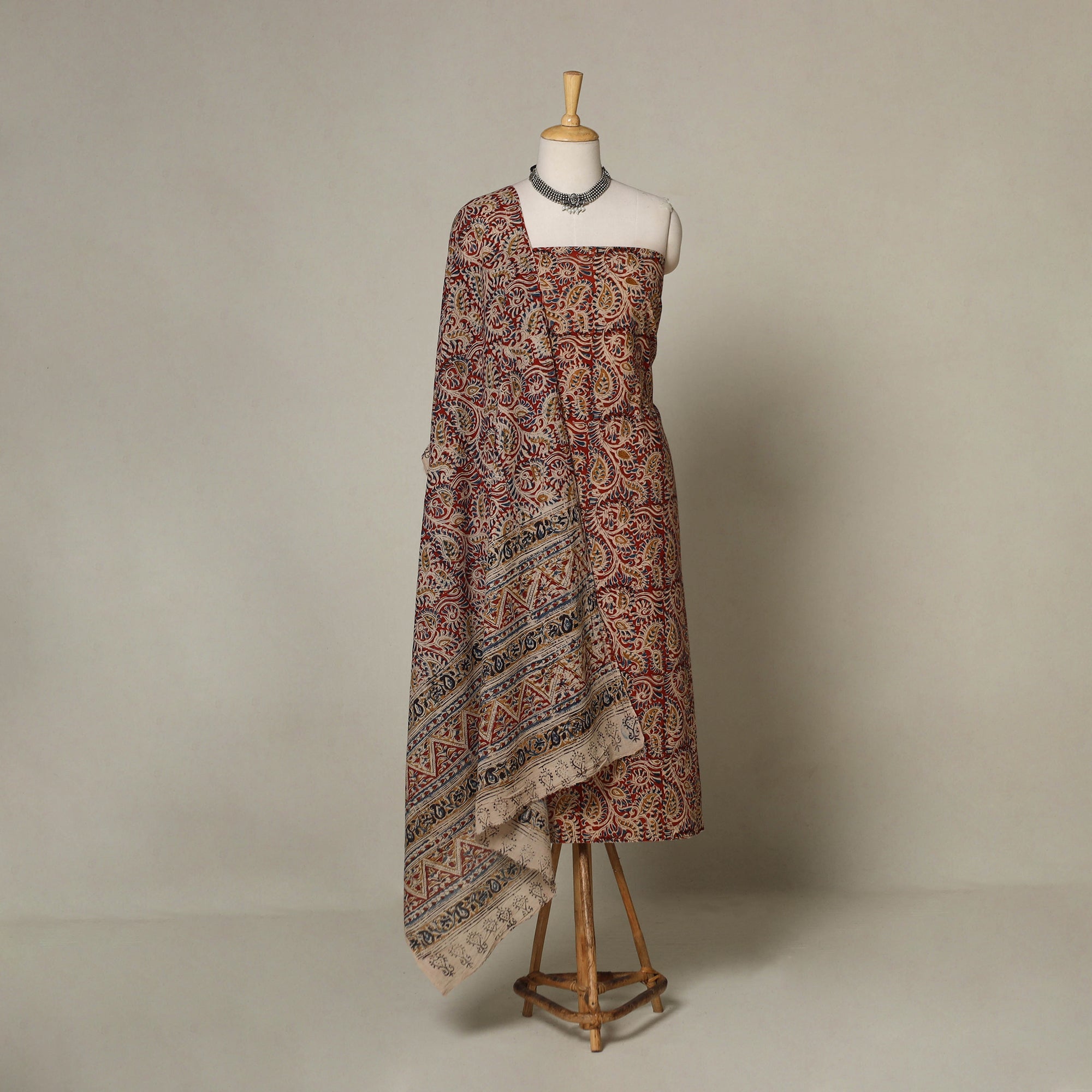 Experience the artistry of red pedana kalamkari block printing with this 2pc block print cotton pedana kalamkari dress material. Made using natural dyes and intricate patterns, it showcases the elegance of one of India’s oldest textile crafts. This set includes a beautifully printed kurta fabric and a matching dupatta, offering breathable comfort and traditional charm. Perfect for festive occasions, office wear, or casual outings.