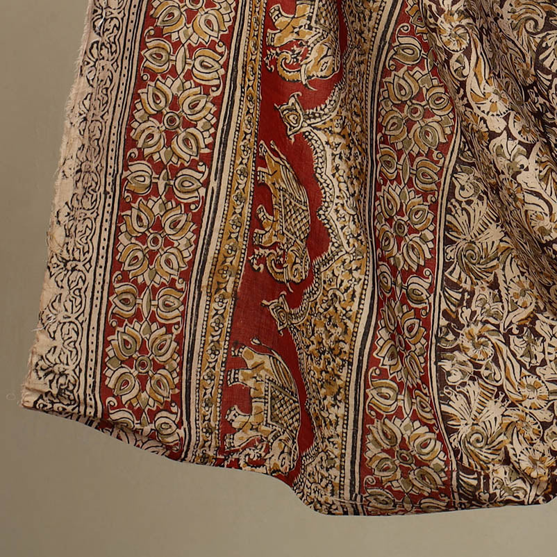 Kalamkari is a type of hand-painted or printed cotton fabric produced in Andhra Pradesh. This is a traditional printing method on cotton fabrics using natural materials without adding chemicals to cotton fabrics.