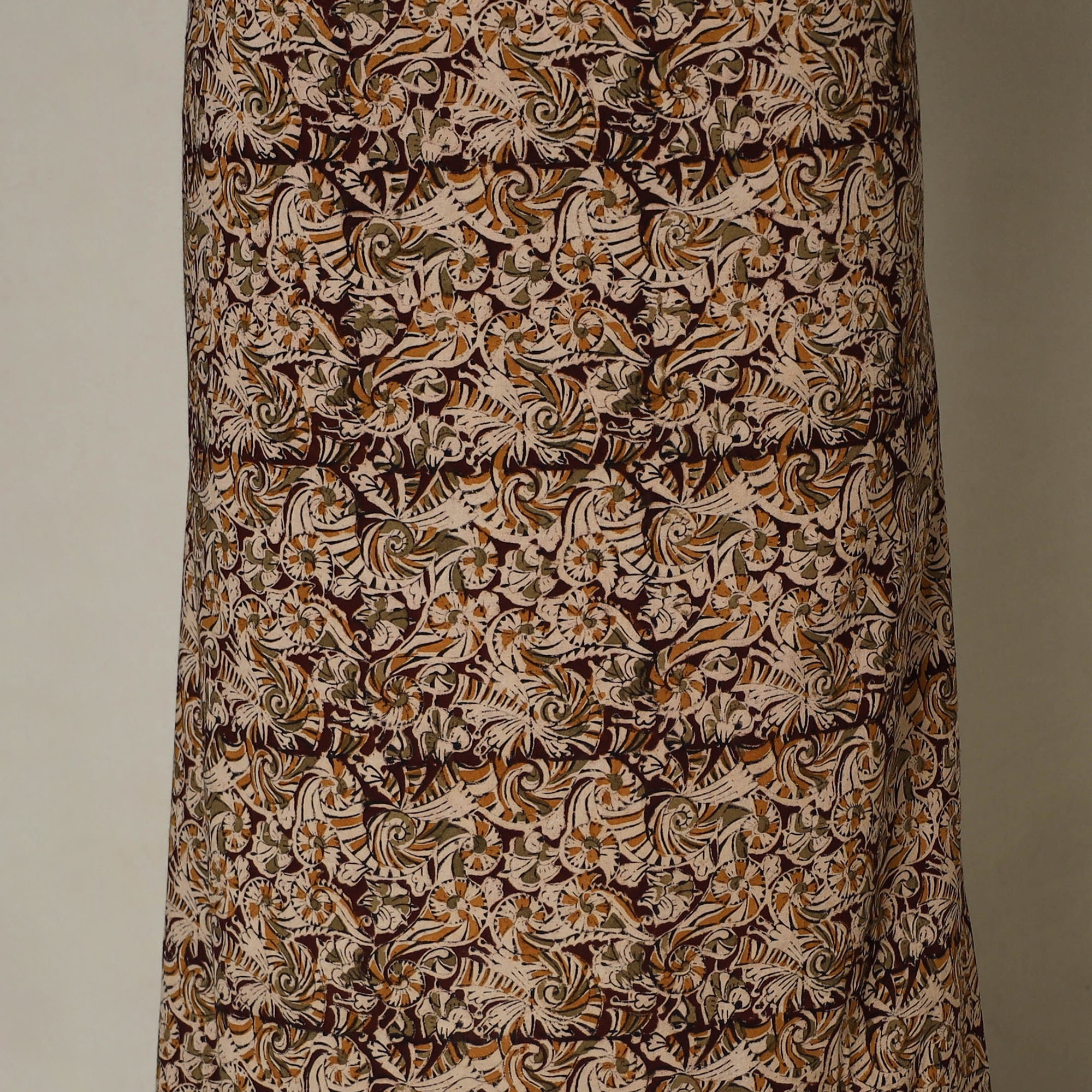 Experience the artistry of brown pedana kalamkari block printing with this 2pc block print cotton pedana kalamkari dress material. Made using natural dyes and intricate patterns, it showcases the elegance of one of India’s oldest textile crafts. This set includes a beautifully printed kurta fabric and a matching dupatta, offering breathable comfort and traditional charm. Perfect for festive occasions, office wear, or casual outings.