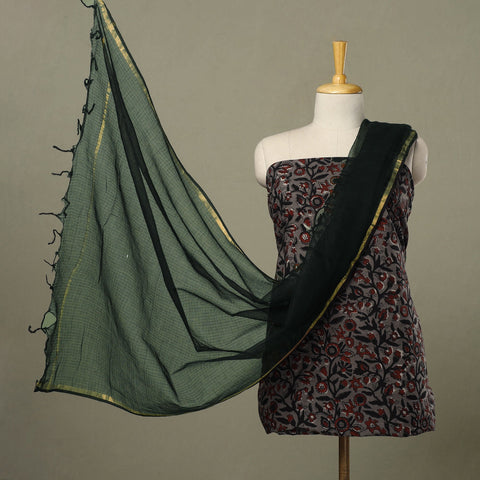 Black - 3pc Natural Dyed Maheshwari Silk Unstitched Vanaspati Jahota Dress Material 21