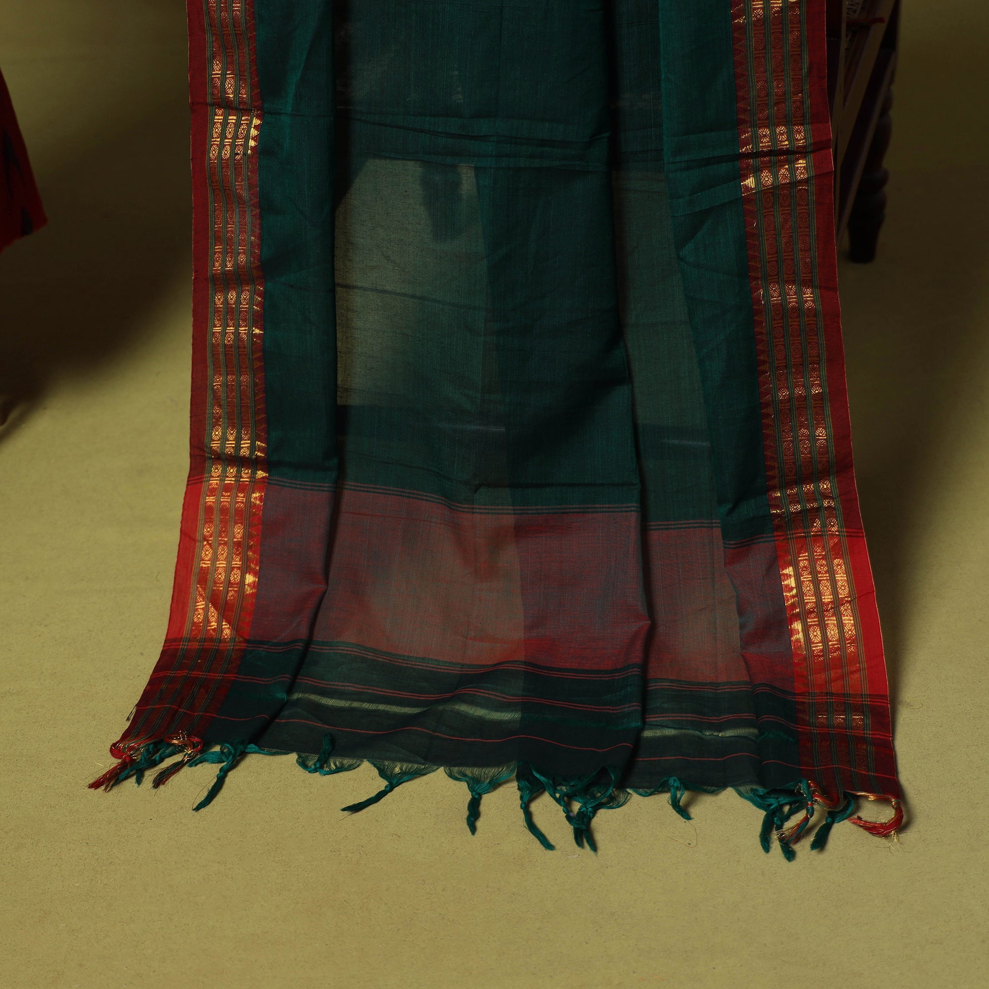 Green - Handloom Raw Silk Pochampally Ikat Fabric 01