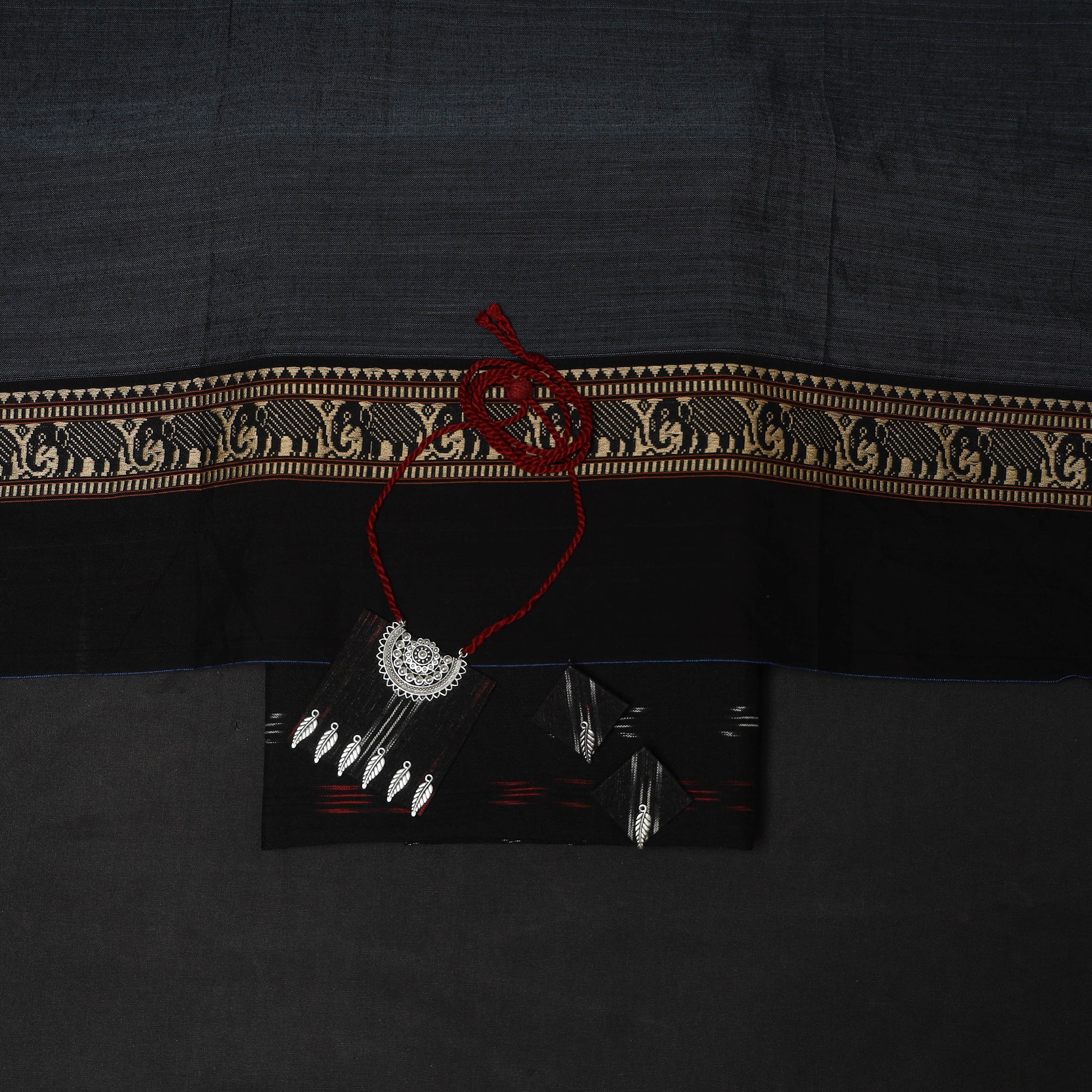 This 2pc set includes a pochampally Ikat cotton kurta paired with a dharwad cotton dupatta. It comes with matching necklace and earrings, adding refined ethnic charm to the look. Designed for both festive elegance and everyday comfort, it’s perfect for daily wear or as a meaningful gift, beautifully balancing tradition with modern grace.