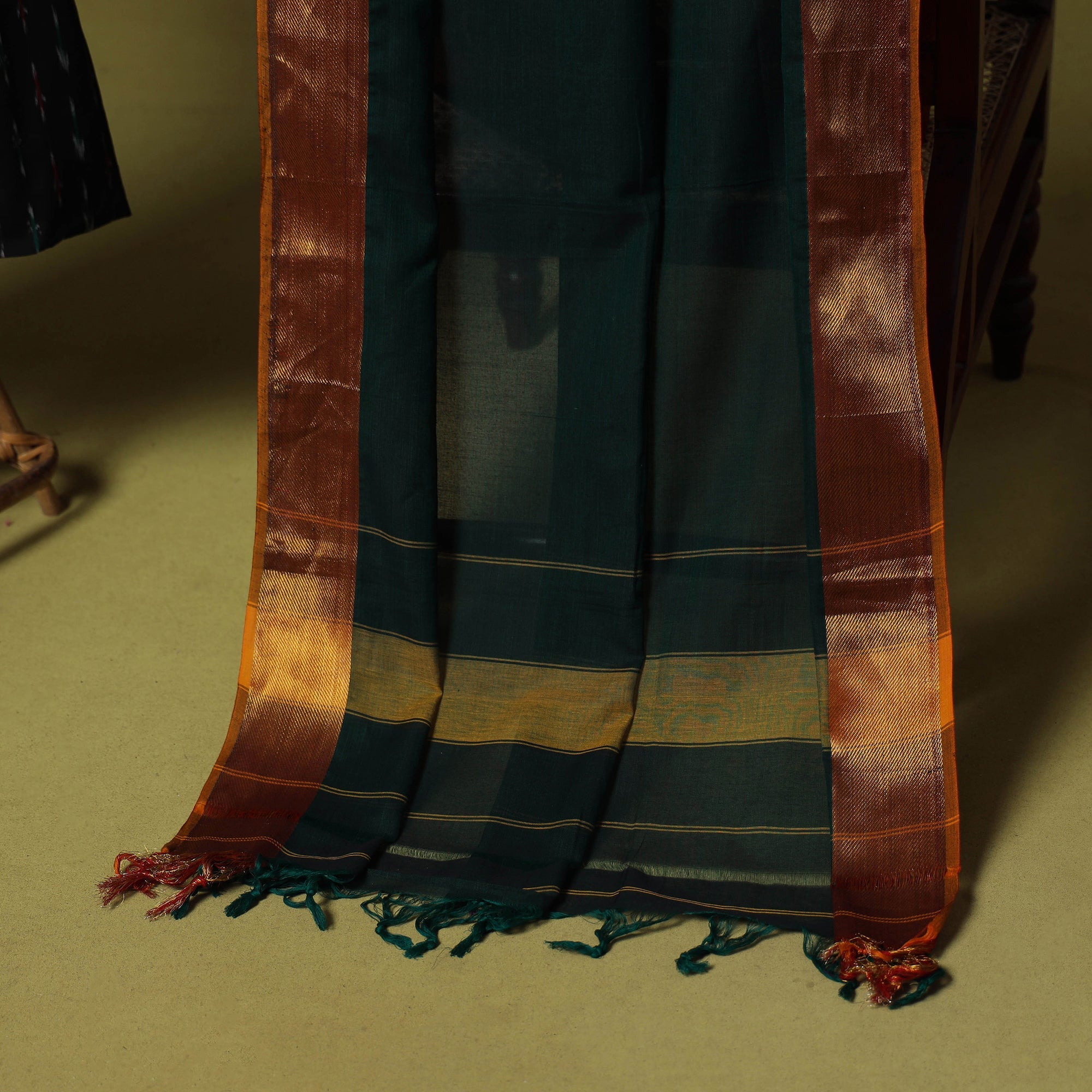 Green - Handloom Raw Silk Pochampally Ikat Fabric 01