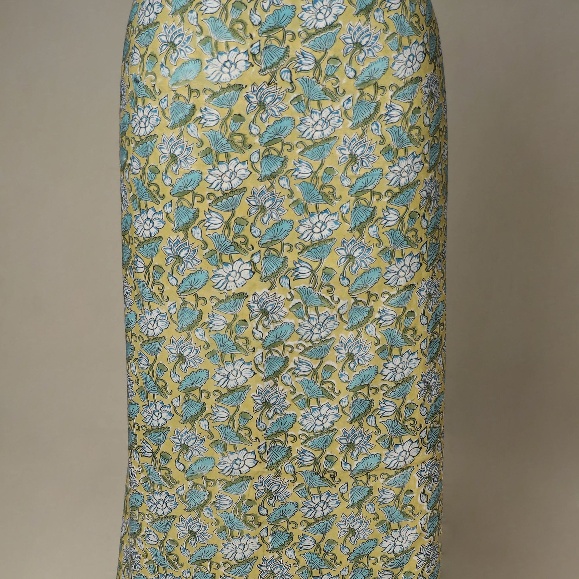 Beige - Hand Block Print Cotton Sanganeri Fabric 05