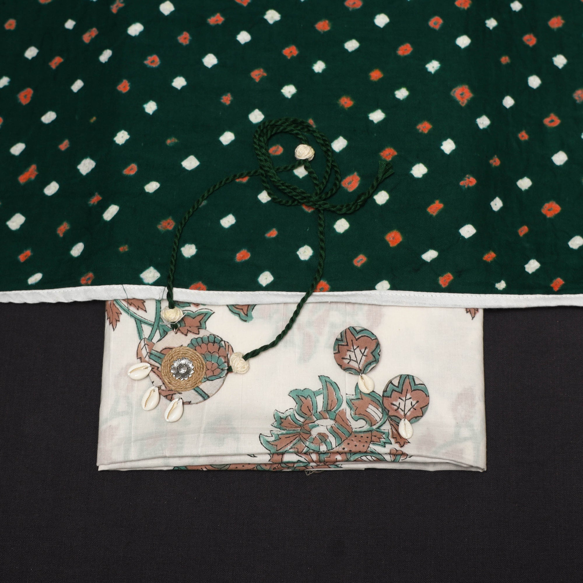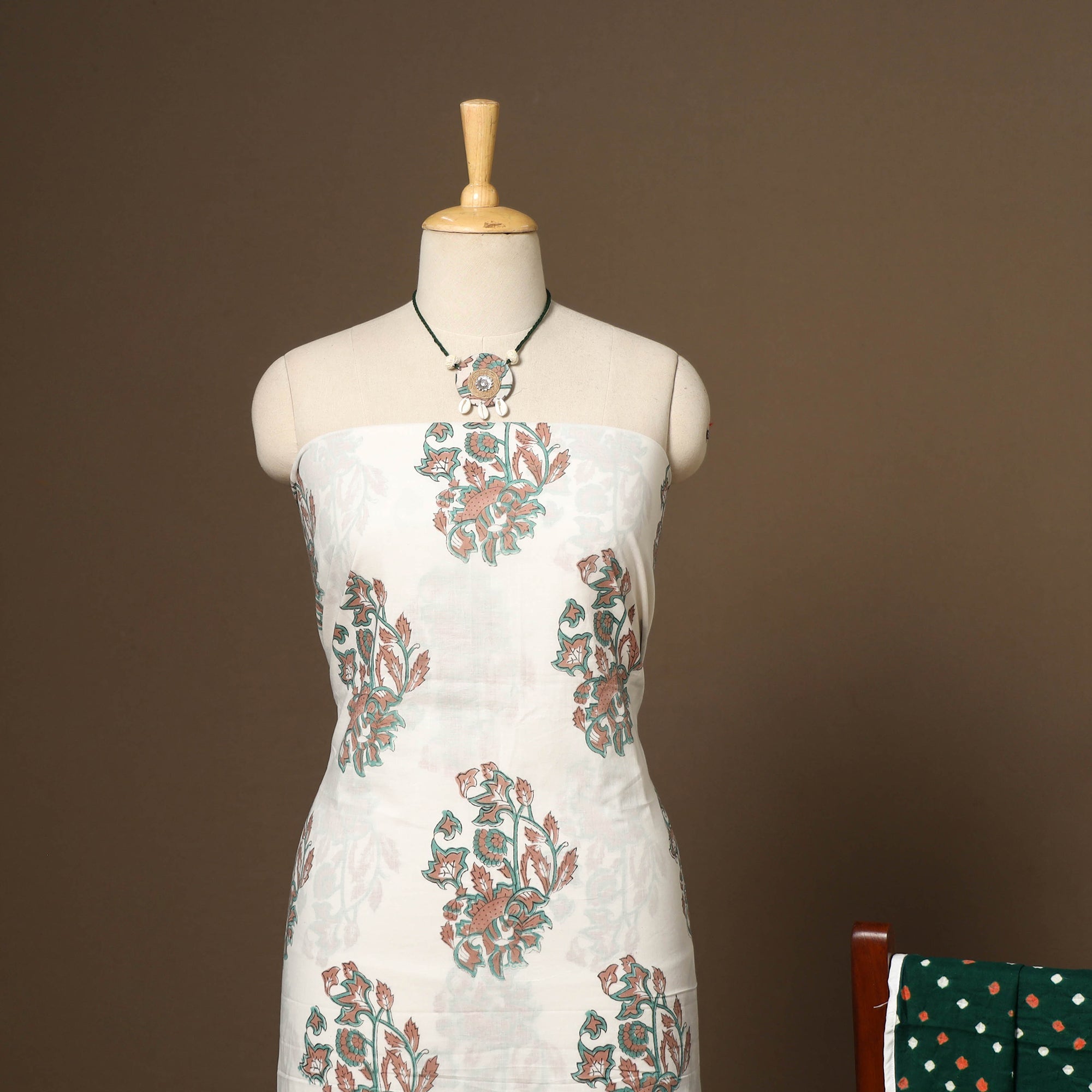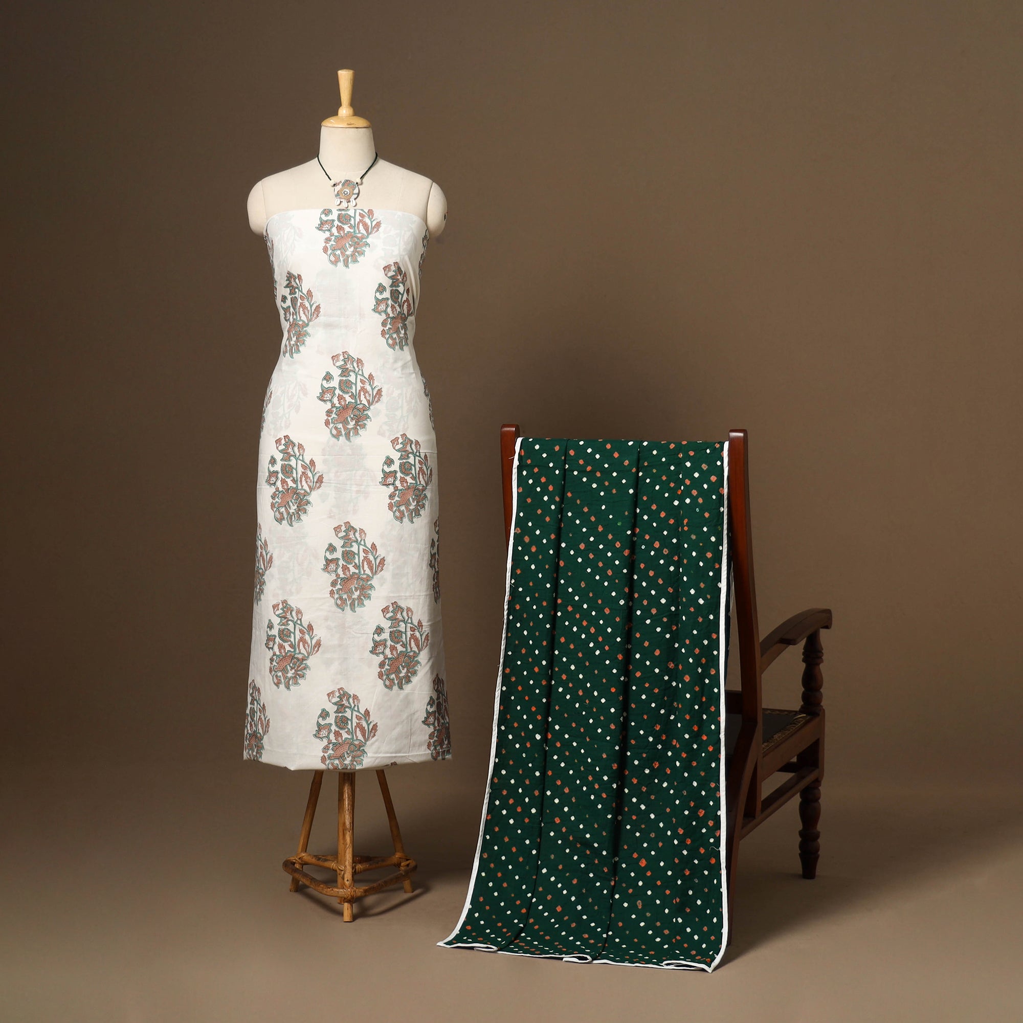 This white 2pc set includes a sanganeri block print cotton kurta paired with a bandhani tie-dye cotton dupatta. It comes with a matching necklace and earrings, adding refined ethnic charm to the look. Designed for both festive elegance and everyday comfort, it’s perfect for daily wear or as a meaningful gift, beautifully balancing tradition with modern grace.