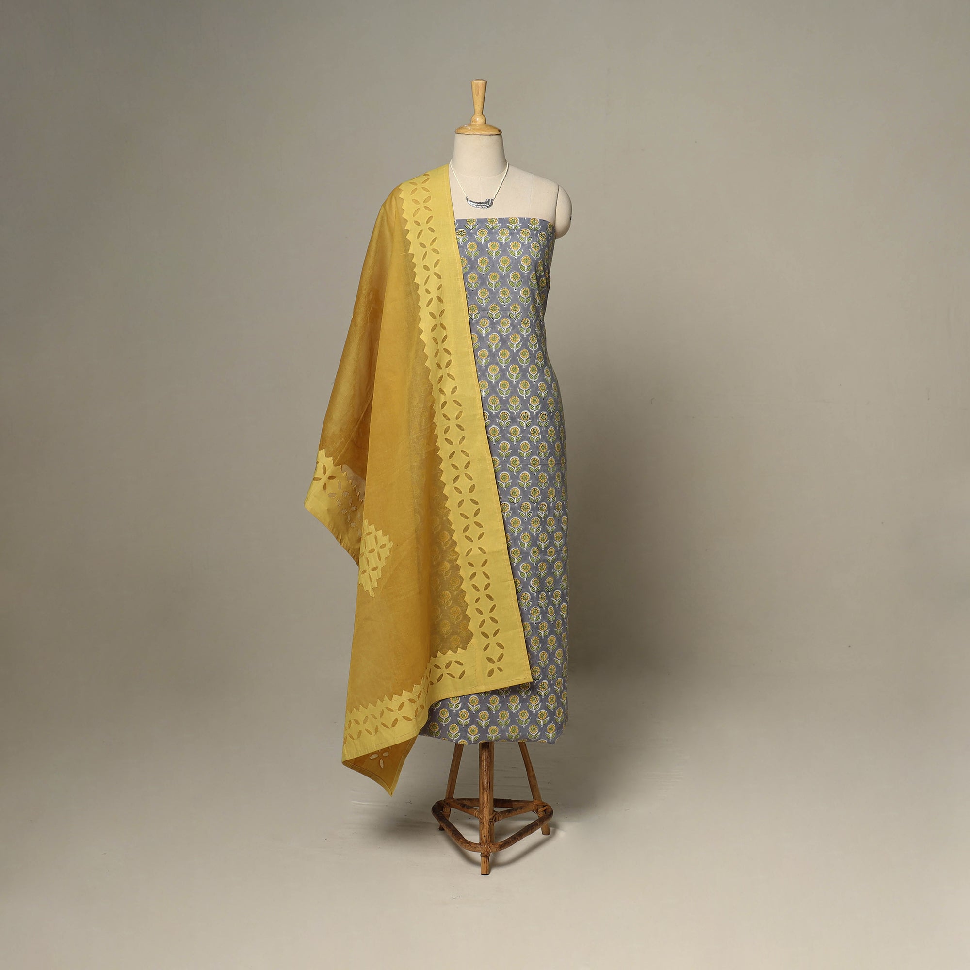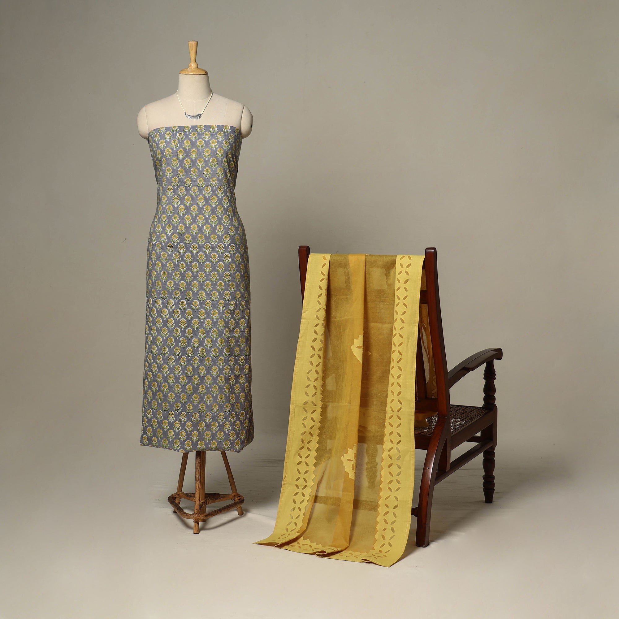 This grey 2pc set includes a sanganeri block print cotton kurta paired with an applique cotton dupatta. It comes with matching necklace and earrings, adding refined ethnic charm to the look. Designed for both festive elegance and everyday comfort, it’s perfect for daily wear or as a meaningful gift, beautifully balancing tradition with modern grace.