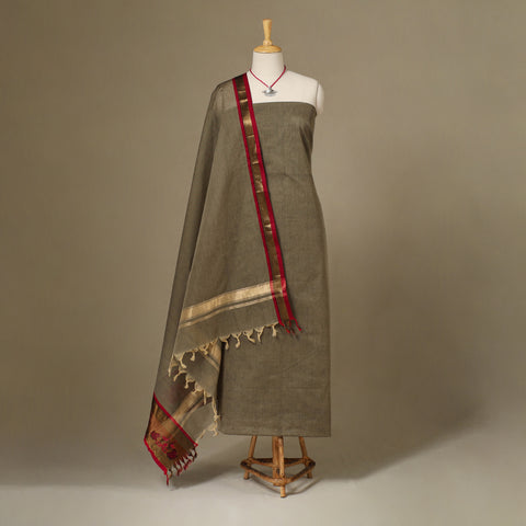 This brown 2pc kandangi chettinad cotton dress material set honours the rich weaving legacy of Tamil Nadu. It features a vibrant kurta fabric adorned with a traditional border, paired with a matching dupatta. Crafted using age-old weaving techniques, the breathable cotton ensures all-day comfort and effortless elegance. Thoughtfully paired with a coordinated jewellery set, it’s perfect for festive gatherings or graceful everyday styling.