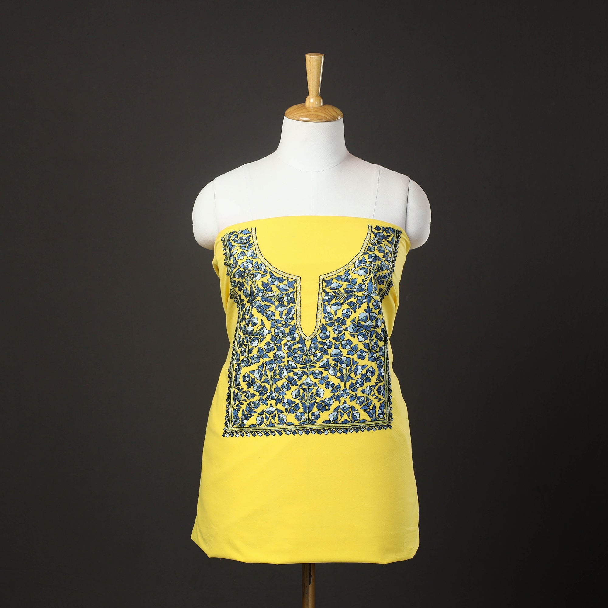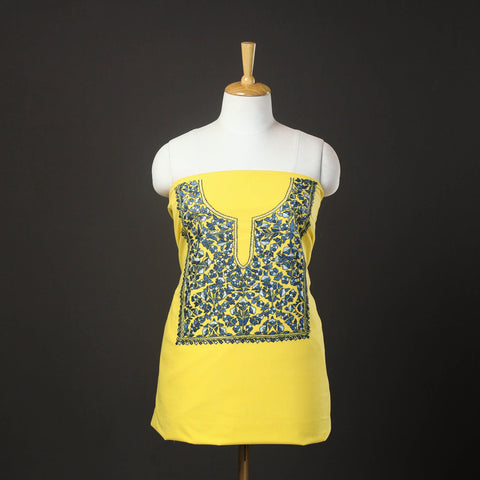 Embrace the beauty of kashmir with this yellow kashida hand embroidery cambric cotton 2-piece dress material by Zahoor Ahmed. This dress material features vibrant, intricate designs made using traditional kashidakari techniques, each piece reflects the rich heritage of Kashmir. This dress material, crafted by skilled artisans, is perfect for creating elegant, unique outfits that stand out. Discover the elegance of this art form and support local craftsmanship.
