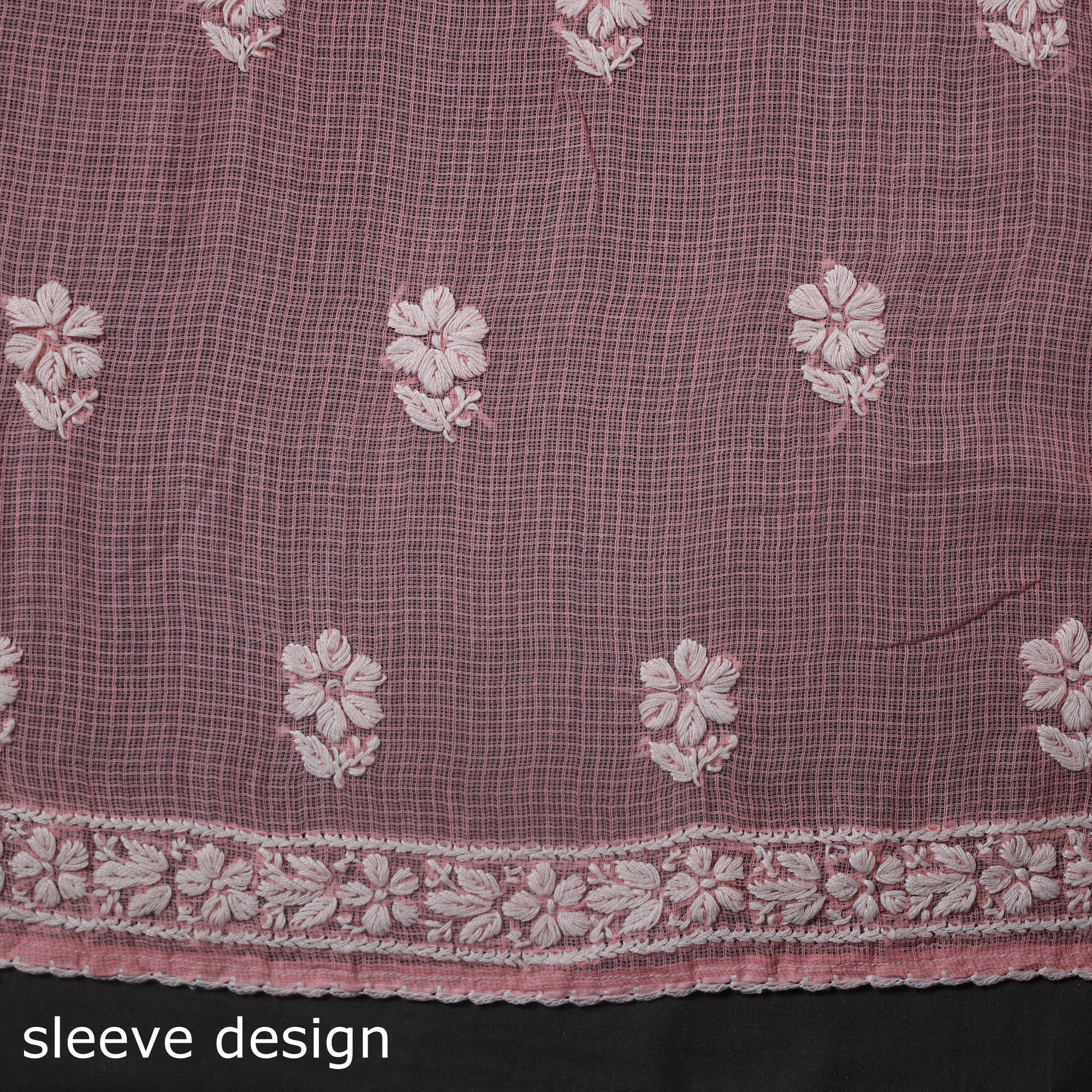This pink 2pc lucknow chikankari dress material is crafted from soft kota doria cotton and adorned with delicate hand embroidery. The set features a beautifully embroidered kurta paired with a matching dupatta. Chikankari is a traditional embroidery art from Lucknow, reflects timeless finesse and rich cultural heritage. Lightweight and breathable, this ensemble is ideal for festive occasions or casual styling.
