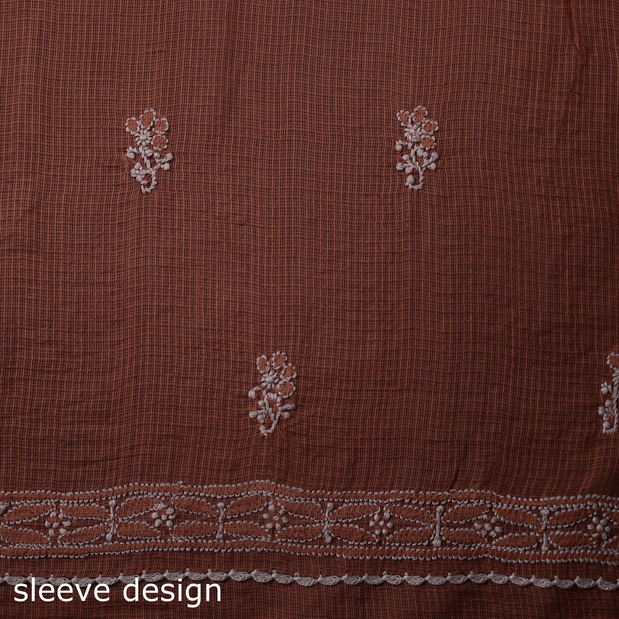 This brown 2pc lucknow chikankari dress material is crafted from soft kota doria cotton and adorned with delicate hand embroidery. The set features a beautifully embroidered kurta paired with a matching dupatta. Chikankari is a traditional embroidery art from Lucknow, reflects timeless finesse and rich cultural heritage. Lightweight and breathable, this ensemble is ideal for festive occasions or casual styling.
