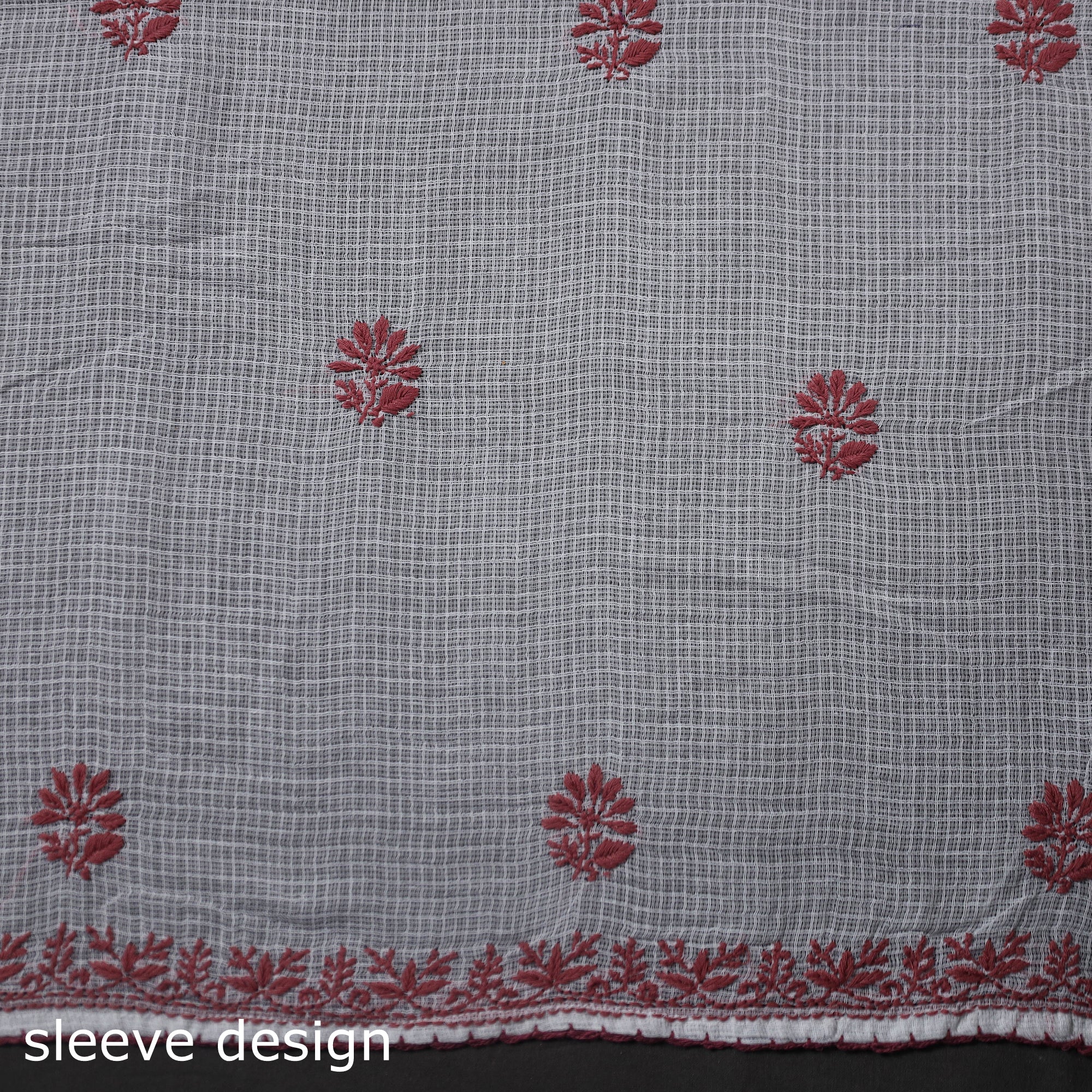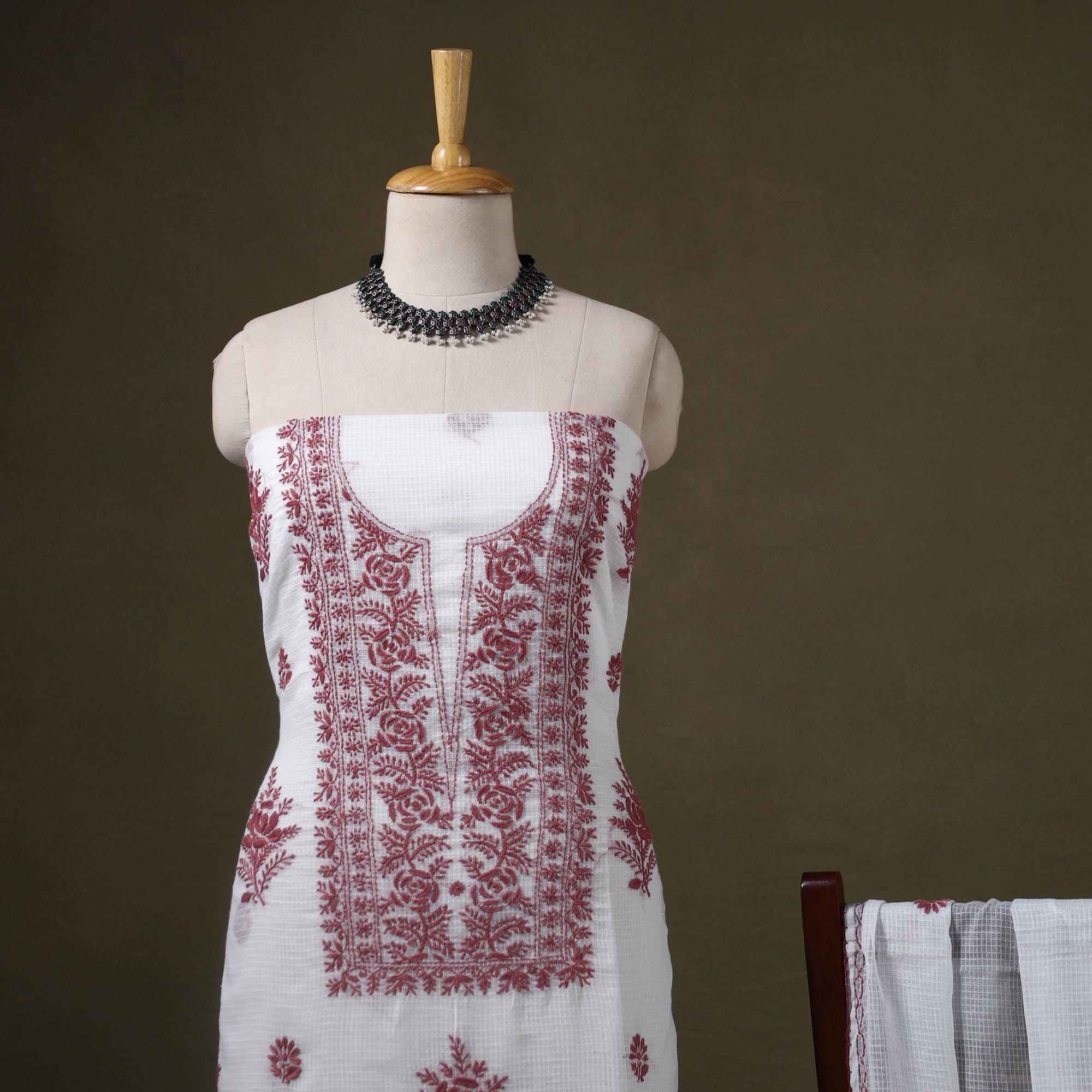 This white 2pc lucknow chikankari dress material is crafted from soft kota doria cotton and adorned with delicate hand embroidery. The set features a beautifully embroidered kurta paired with a matching dupatta. Chikankari is a traditional embroidery art from Lucknow, reflects timeless finesse and rich cultural heritage. Lightweight and breathable, this ensemble is ideal for festive occasions or casual styling.