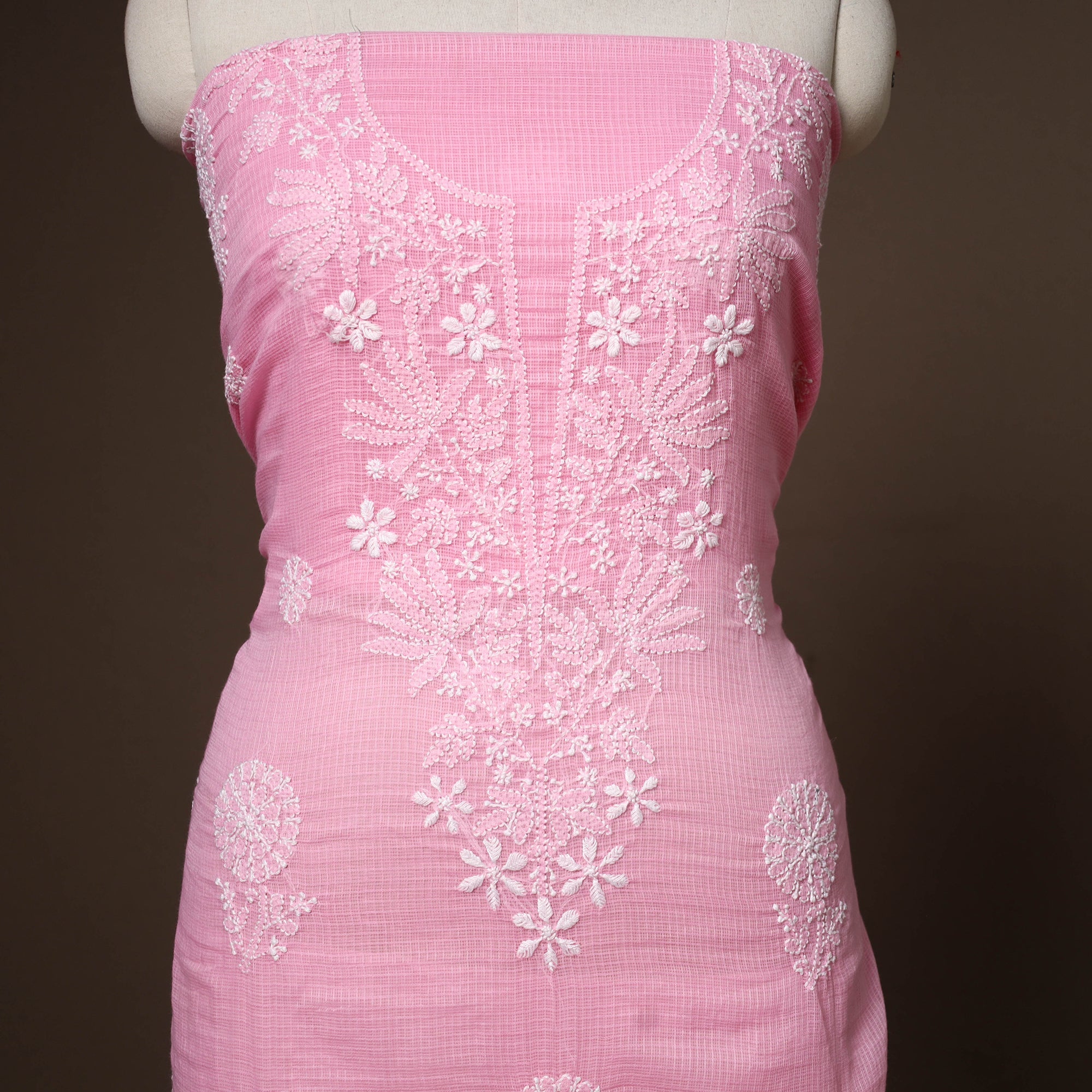 • Pink - 2pc kota doria cotton unstitched lucknow chikankari