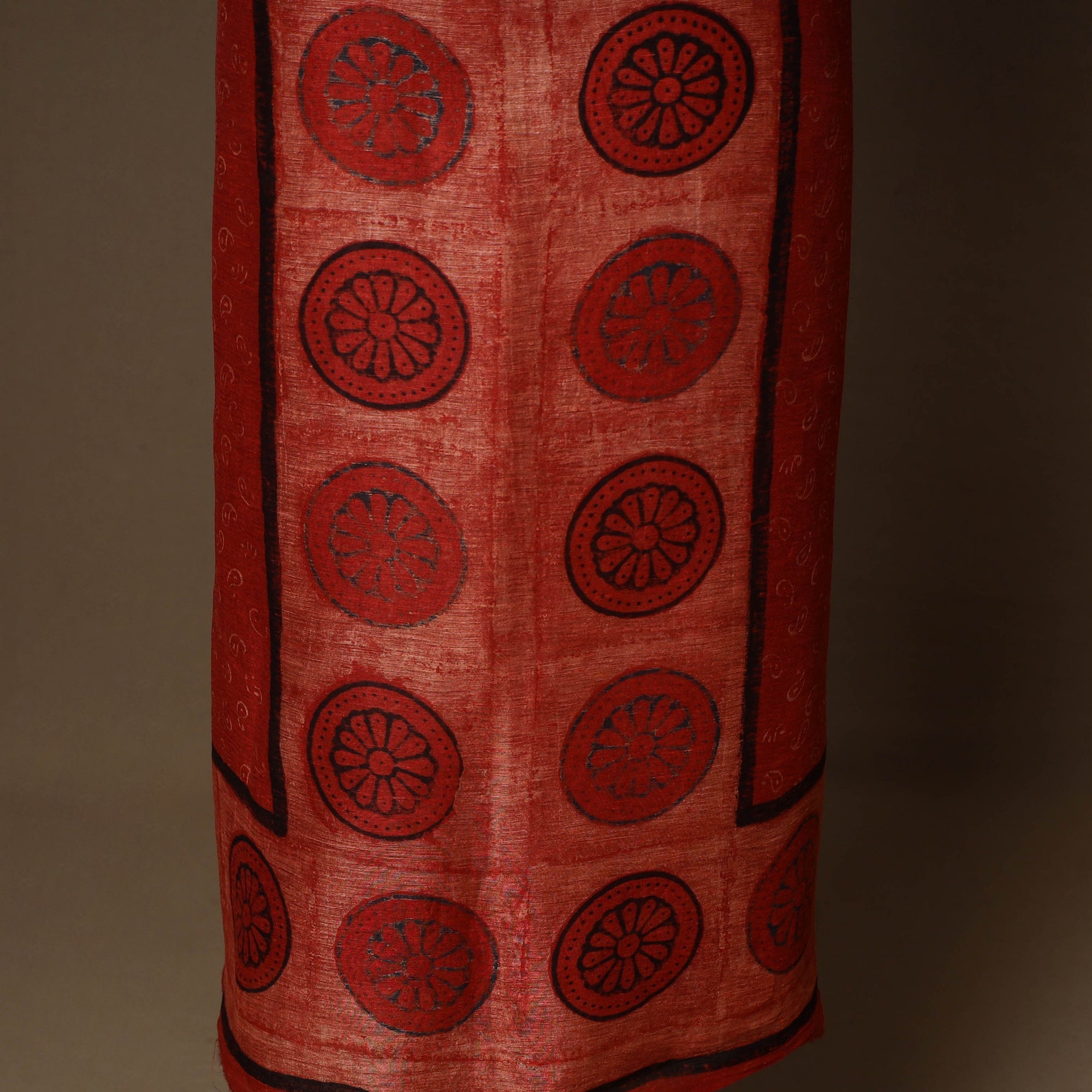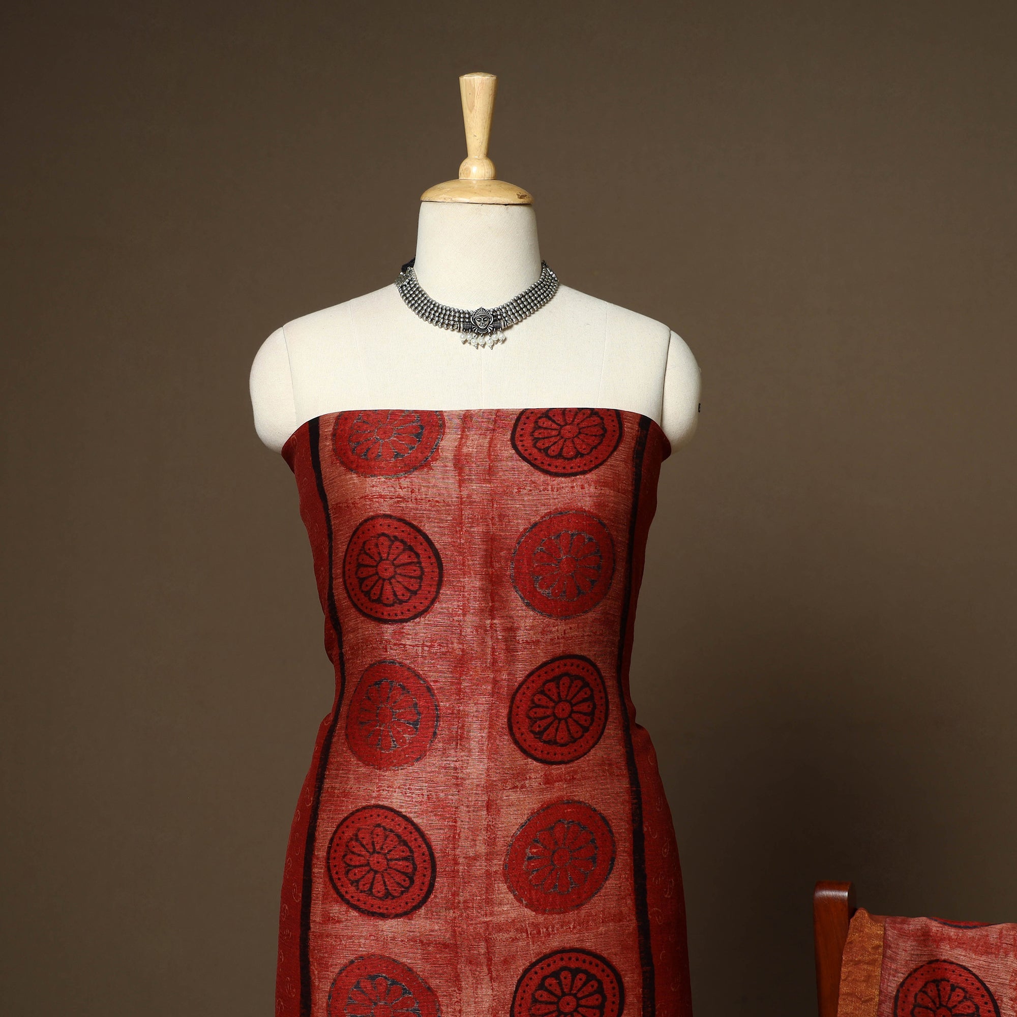 This red linen silk ajrakh dress material set from Kutch, this sets includes fabric for the kurta and a zari bordered dupatta. Crafted with traditional block printing and natural dyes, it beautifully blends heritage with modern elegance. Suitable for festive gatherings as well as daily wear, this set adds timeless grace and effortless comfort to your wardrobe.