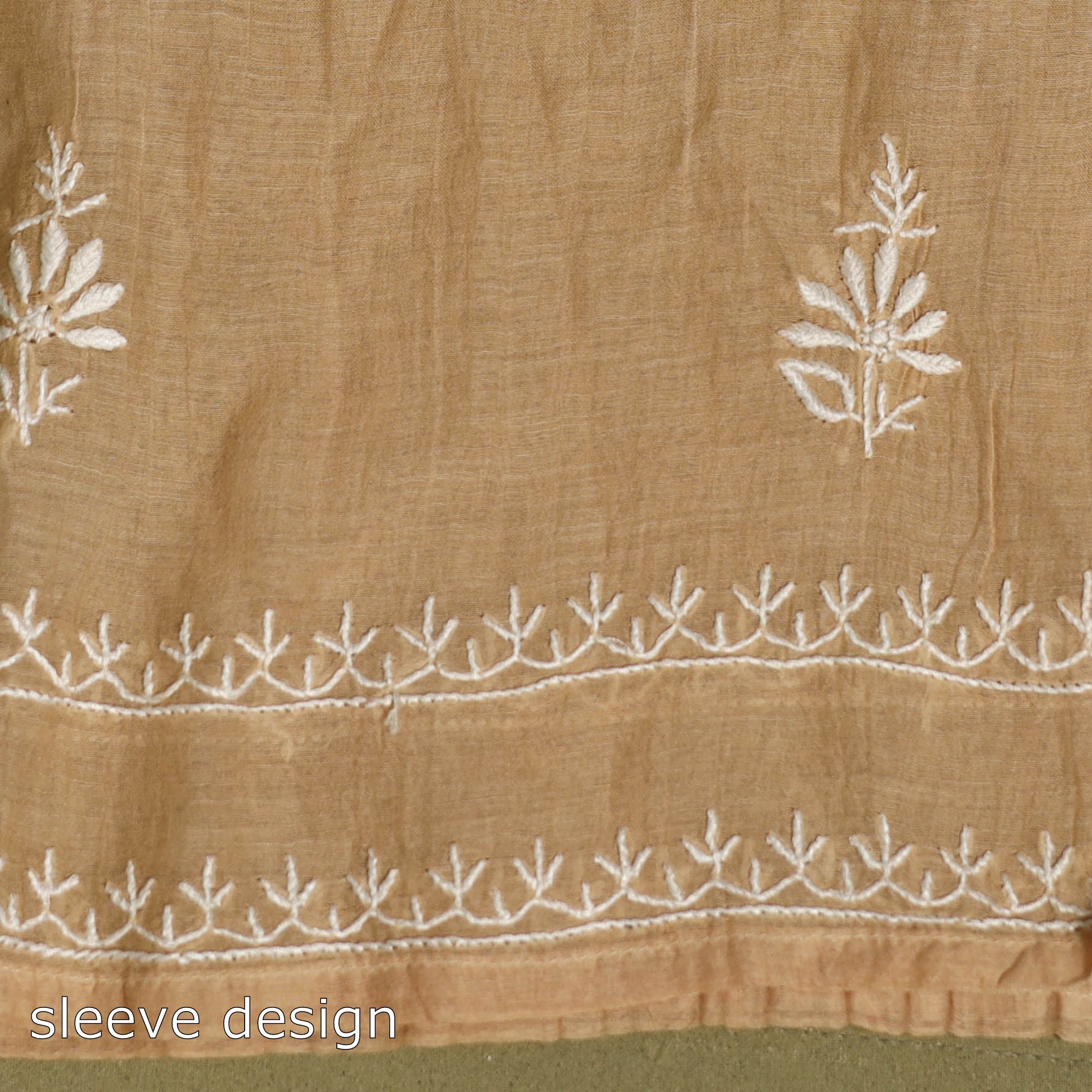 Delicate chikankari embroidery from Meharki Chikan—hand-embroidered kurtas and fabrics crafted by skilled women artisans in soft hues.