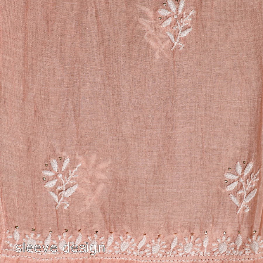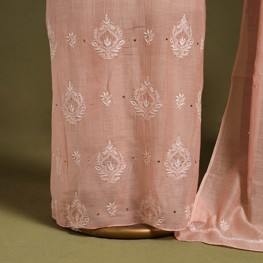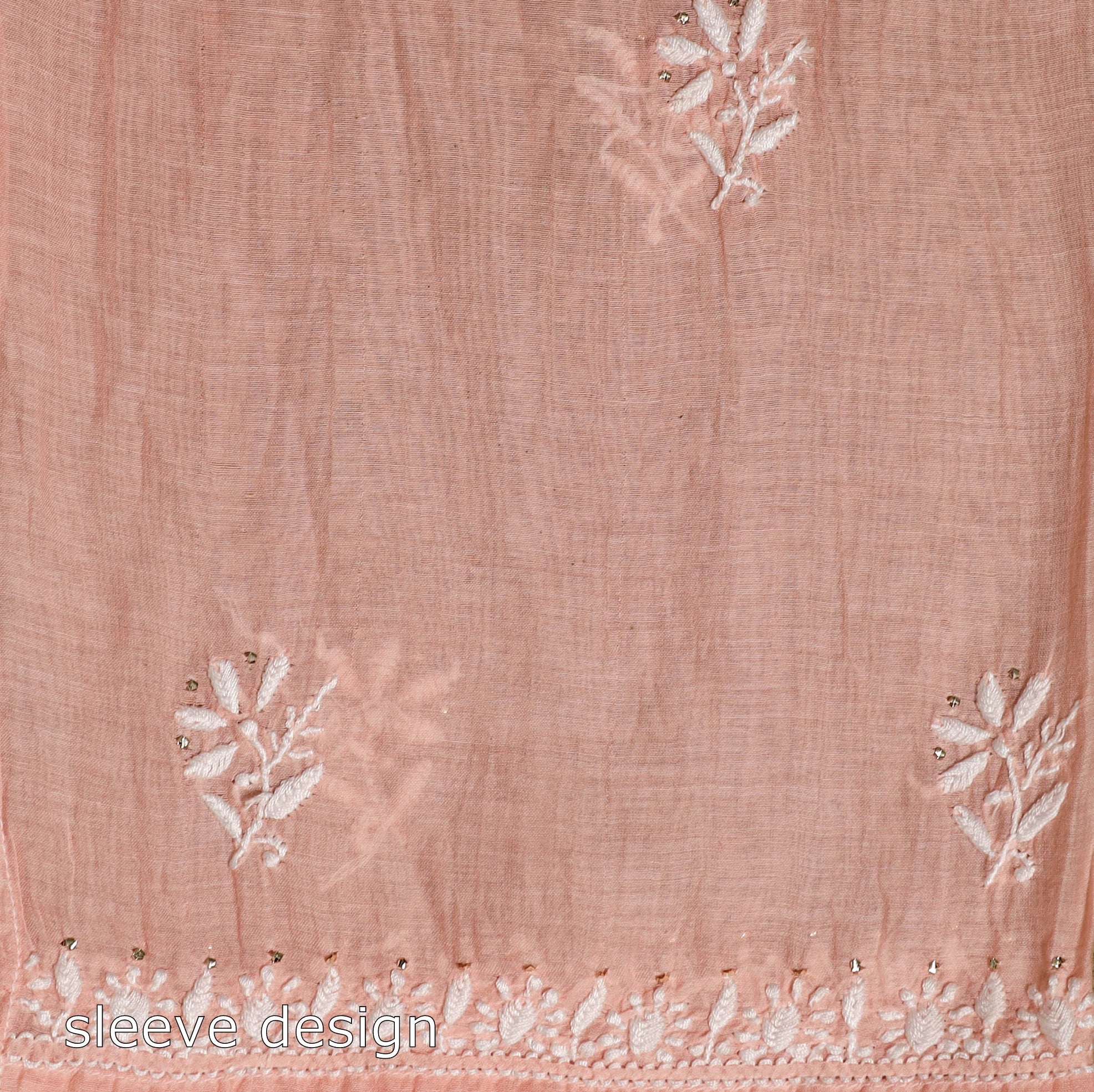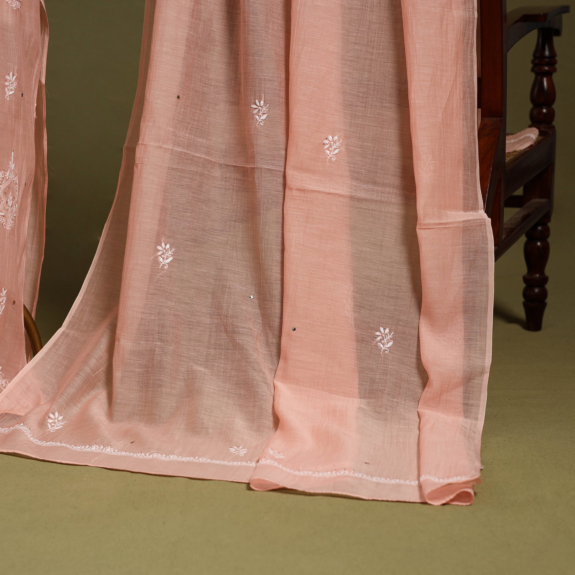 This semi-stitched peach chanderi silk x mul cotton kurta set with a dupatta showcases exquisite lucknowi heavy chikankari embroidery. The lightweight and breathable mul chanderi fabric ensures comfort, while the semi-stitched design allows for a tailored fit. Adorned with intricate threadwork, this ensemble beautifully captures the grace and heritage of traditional artistry, making it an ideal choice for festive and cultural occasions.