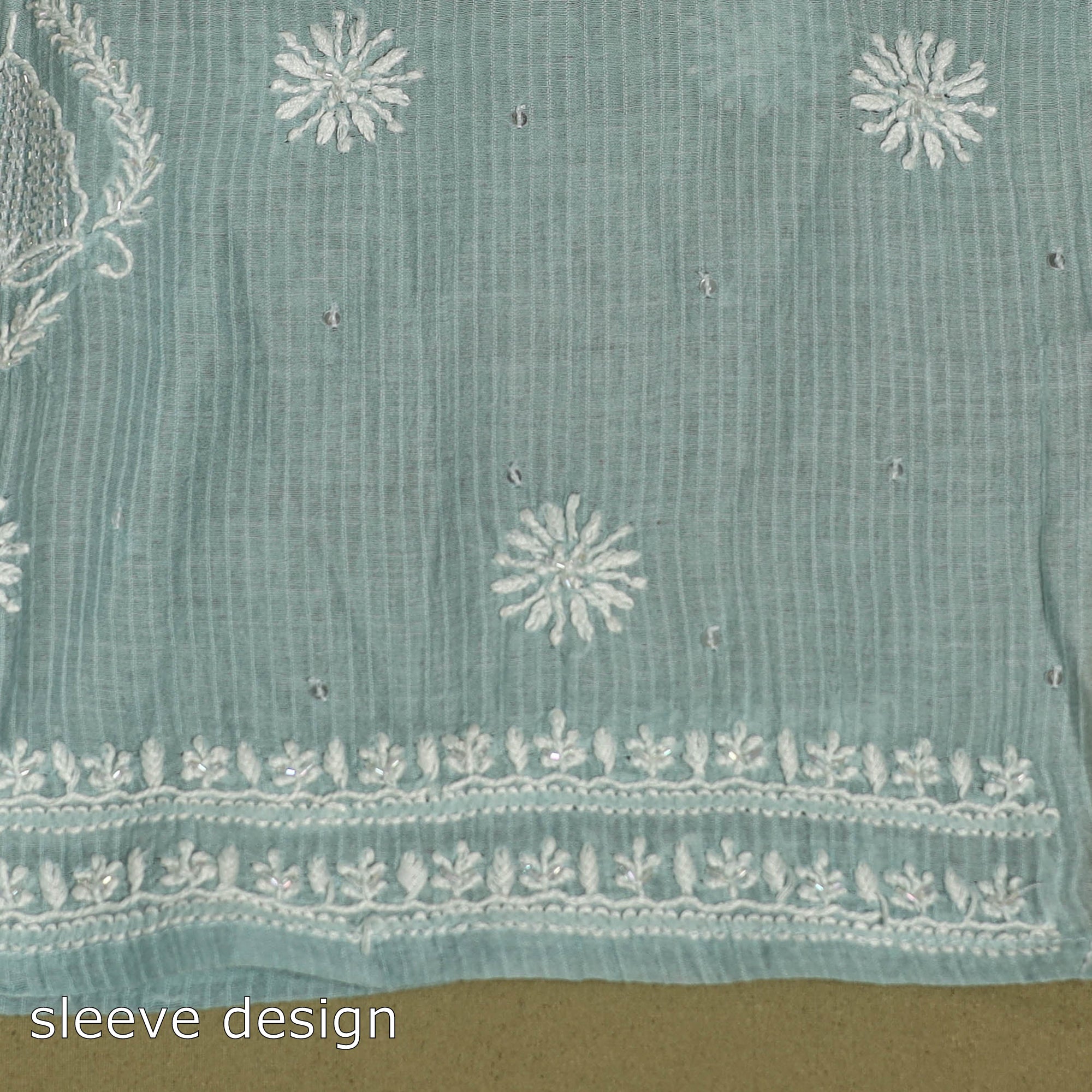 This semi-stitched light green chanderi silk x mul cotton kurta set with a dupatta showcases exquisite lucknowi heavy chikankari embroidery. The lightweight and breathable mul chanderi fabric ensures comfort, while the semi-stitched design allows for a tailored fit. Adorned with intricate threadwork, this ensemble beautifully captures the grace and heritage of traditional artistry, making it an ideal choice for festive and cultural occasions.