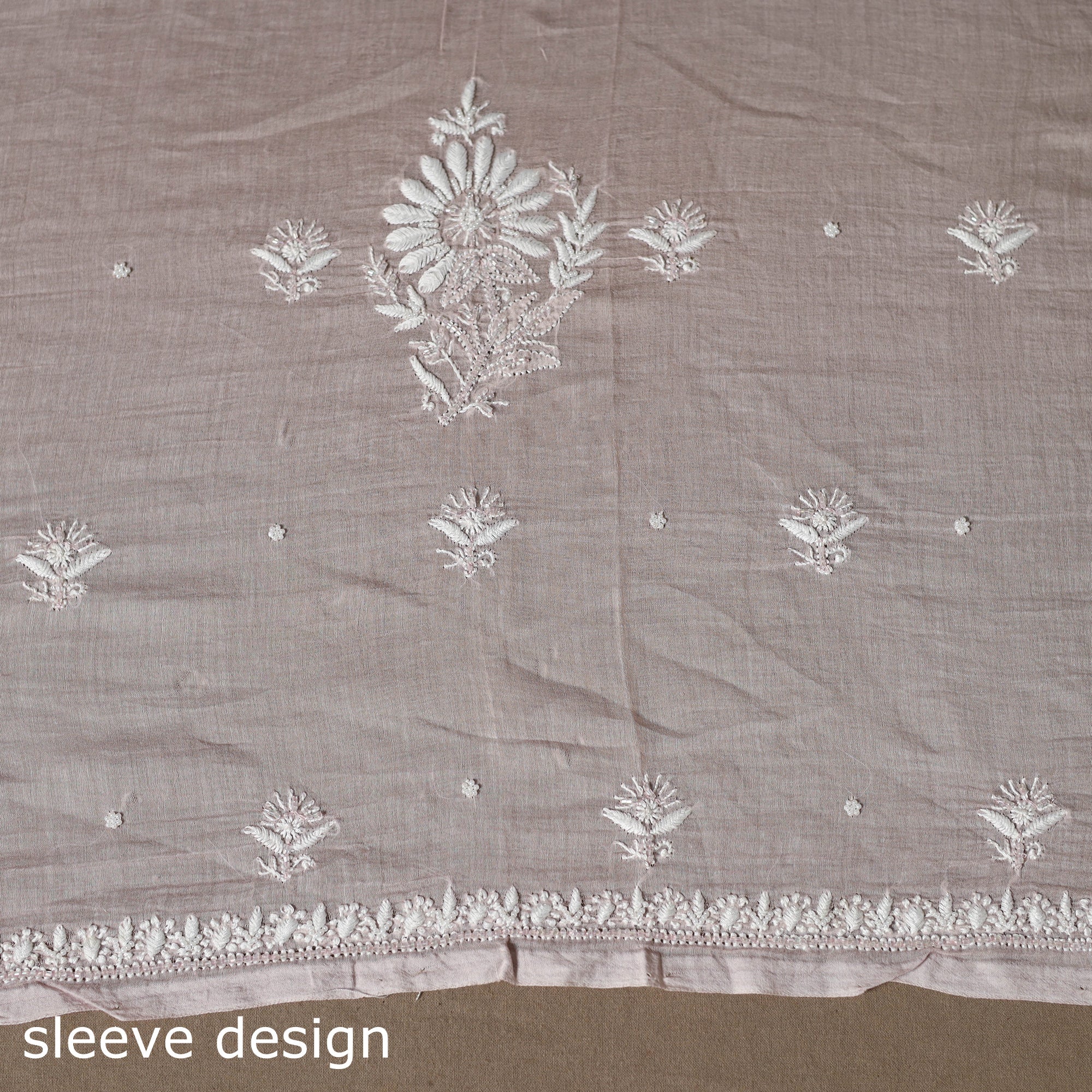 Delicate chikankari embroidery from Meharki Chikan—hand-embroidered kurtas and fabrics crafted by skilled women artisans in soft hues.