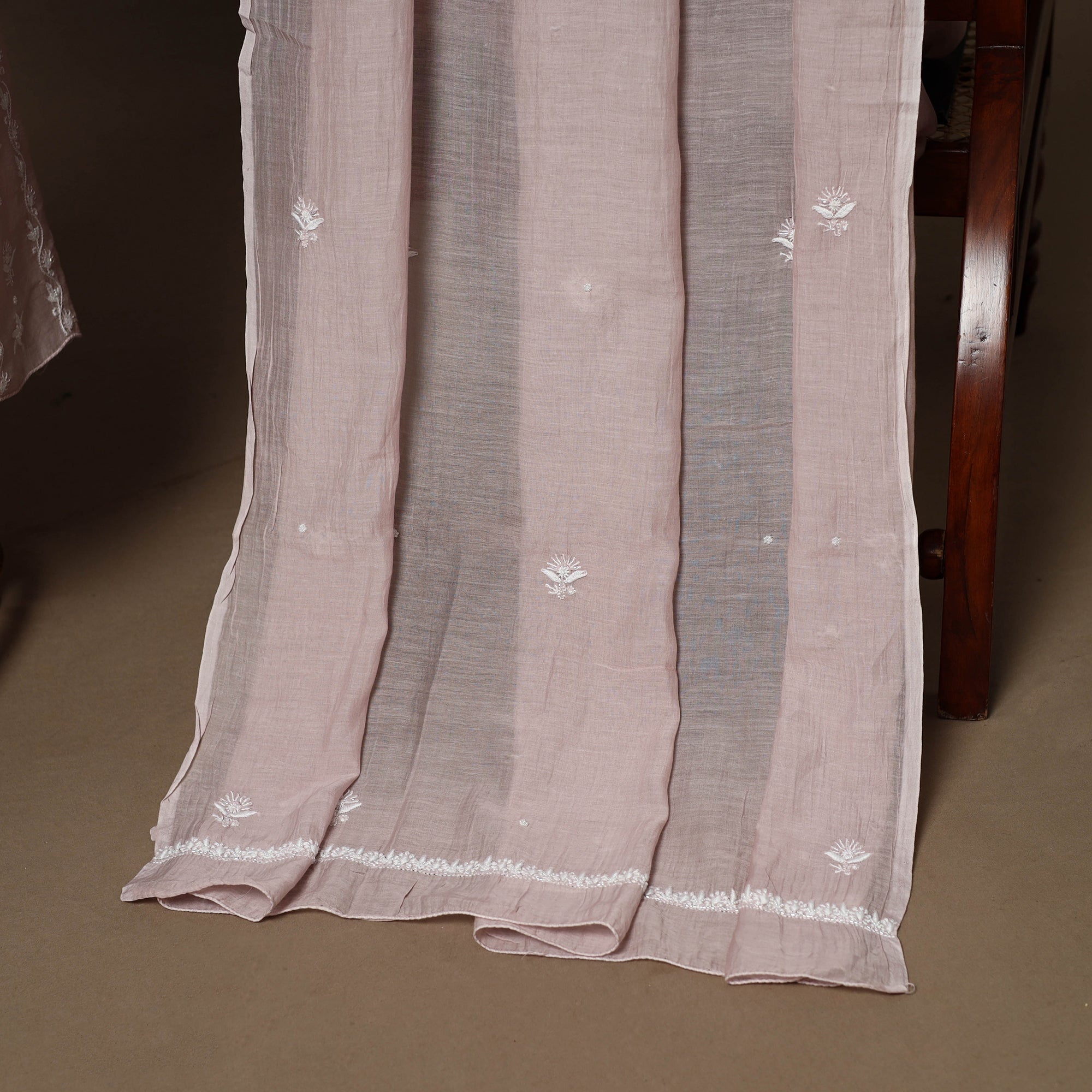 Purple - Kota Doria Cotton Hand Embroidered Lucknowi Chikankari Dupatta 49