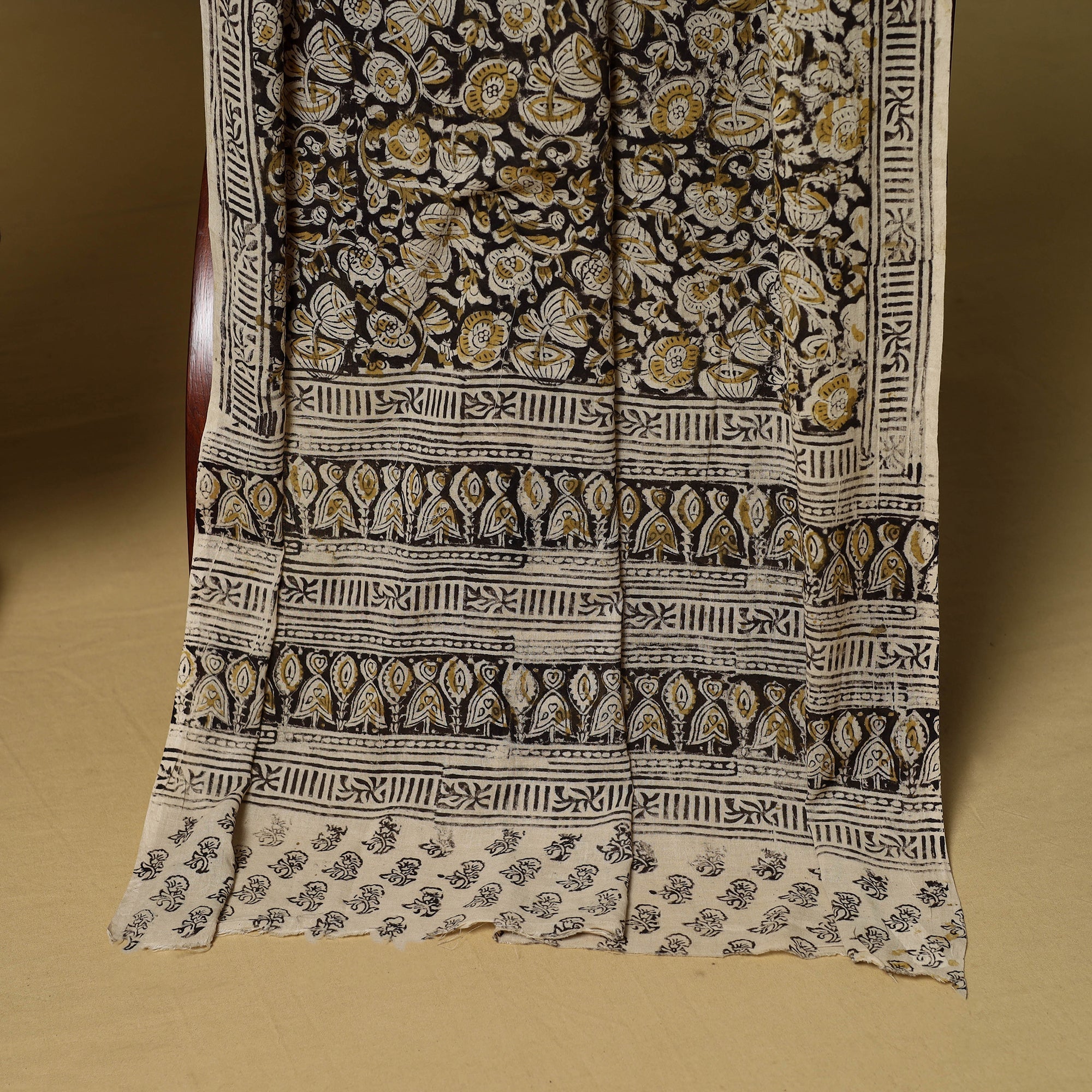 Black 2pc cotton dress material set features kalamkari block printing made with natural dyes. It includes cotton fabric for the kurta and a matching dupatta, both designed using carved wooden blocks. Comfortable and easy to stitch, this set is a good choice for everyday wear while adding a subtle touch of cultural charm to your outfit.