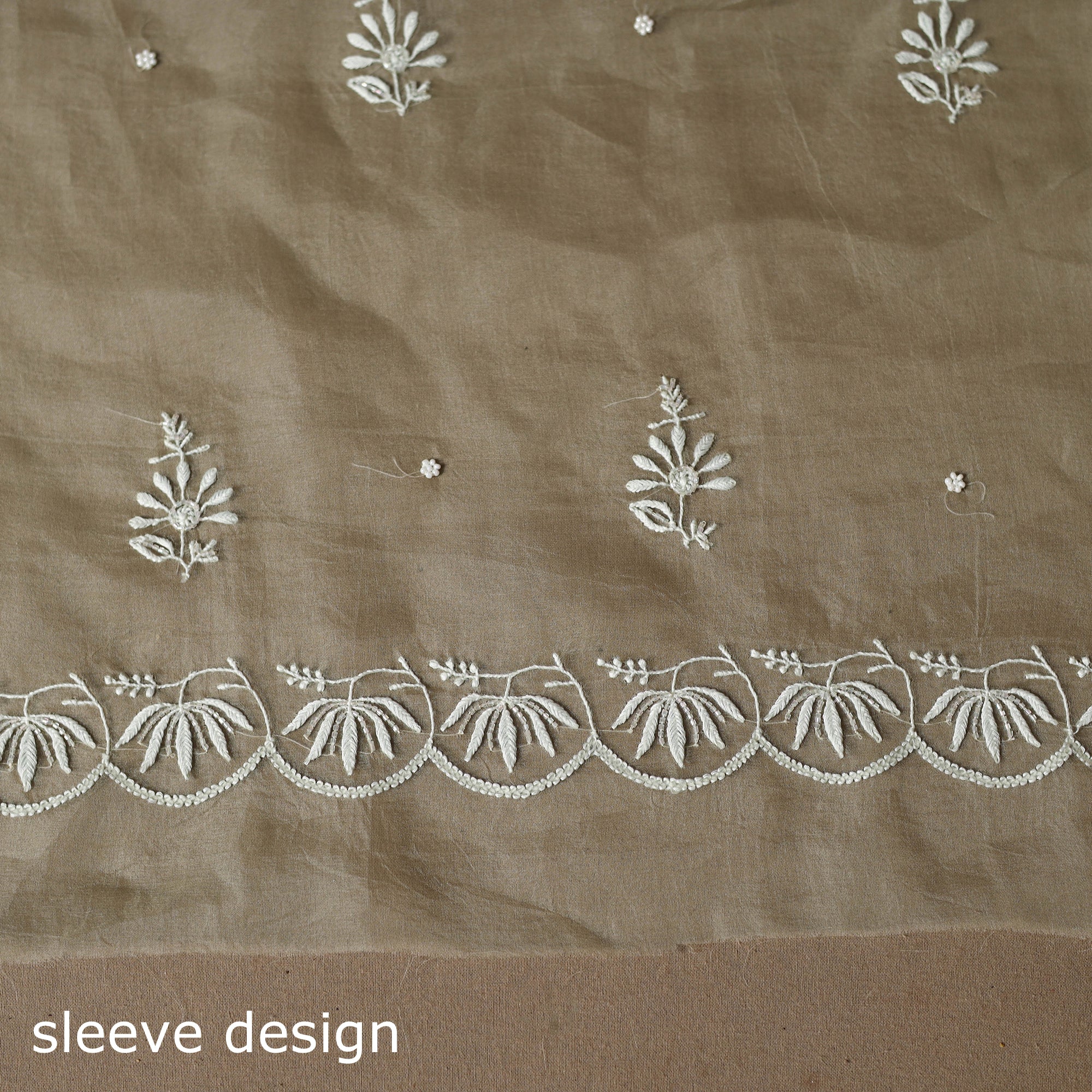 Delicate chikankari embroidery from Meharki Chikan—hand-embroidered kurtas and fabrics crafted by skilled women artisans in soft hues.
