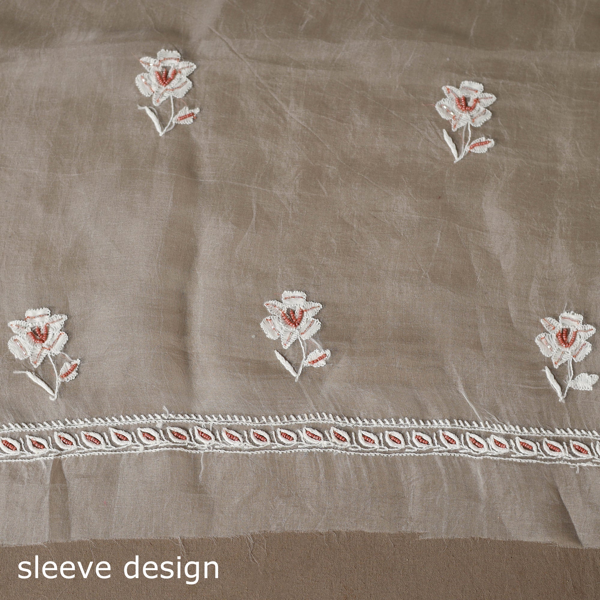 Delicate chikankari embroidery from Meharki Chikan—hand-embroidered kurtas and fabrics crafted by skilled women artisans in soft hues.
