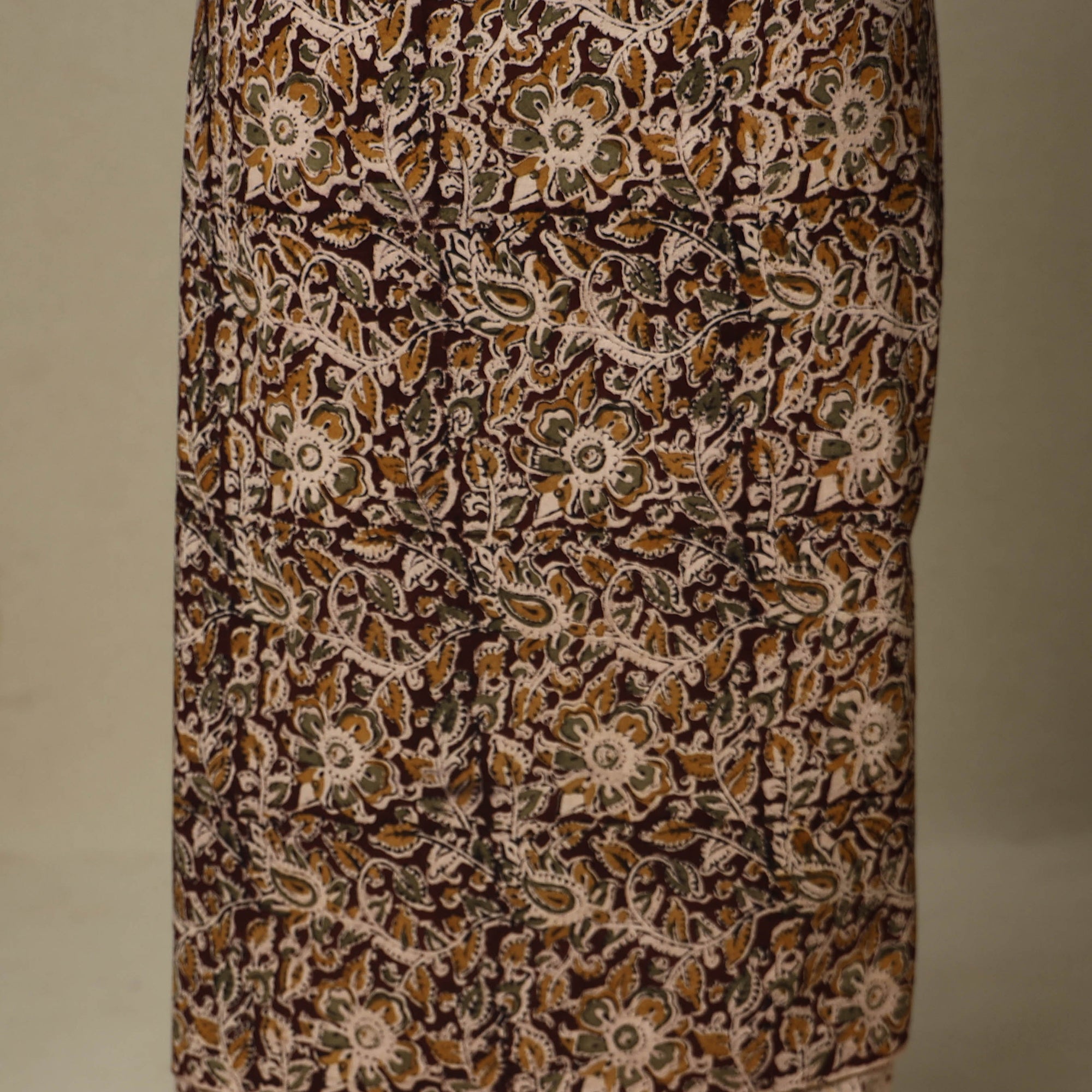 This brown pedana kalamkari 2pc cotton dress material set reflects the timeless beauty of Indian textiles. Made using intricately carved wooden blocks and natural dyes, it showcases a beautifully printed kurta fabric with a coordinated dupatta. The breathable cotton ensures comfort throughout the day, making it an ideal choice for both everyday wear and special occasions.