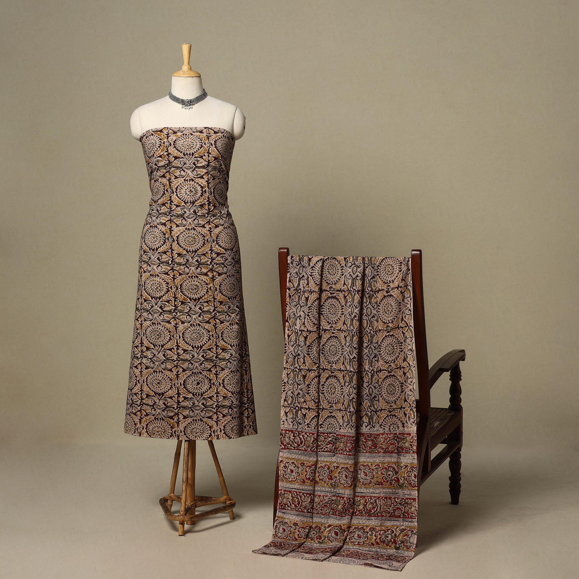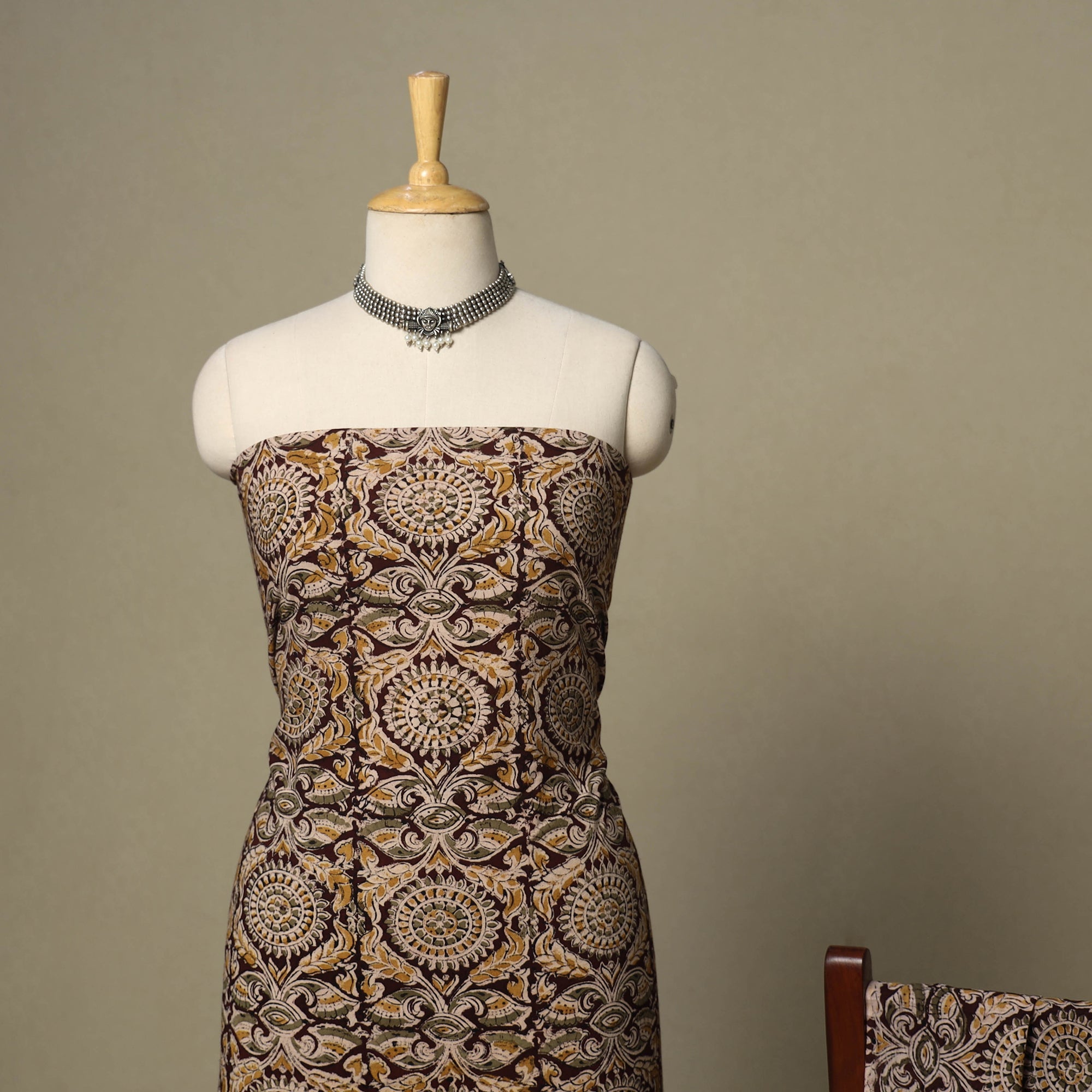 This brown pedana kalamkari 2pc cotton dress material set reflects the timeless beauty of Indian textiles. Made using intricately carved wooden blocks and natural dyes, it showcases a beautifully printed kurta fabric with a coordinated dupatta. The breathable cotton ensures comfort throughout the day, making it an ideal choice for both everyday wear and special occasions.